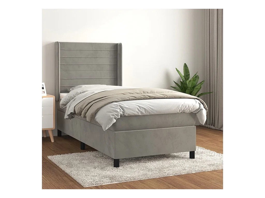 Conjunto Boxspring - 90x200 cm + Somieres + colchón terciopelo gris claro ES36874