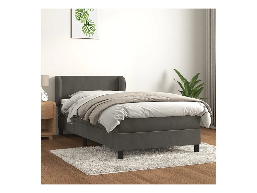 Conjunto Boxspring - 90x200 cm + Somieres + colchón terciopelo gris oscuro ES35348