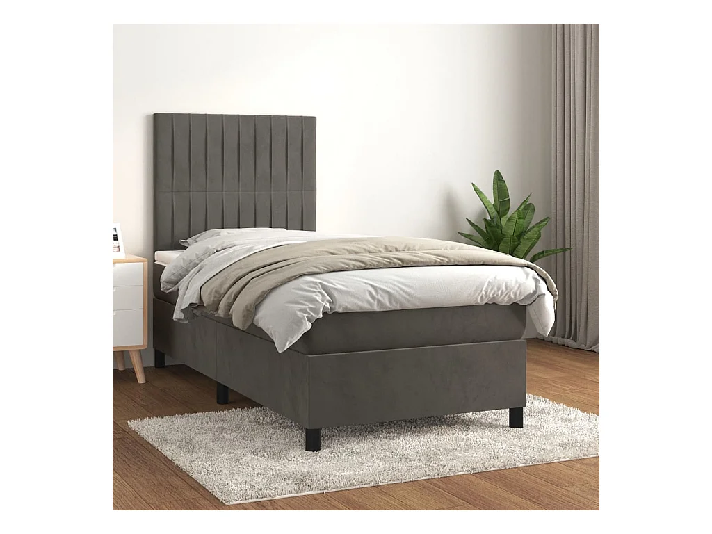 Conjunto Boxspring - 90x200 cm + Somieres + colchón terciopelo gris oscuro ES35879