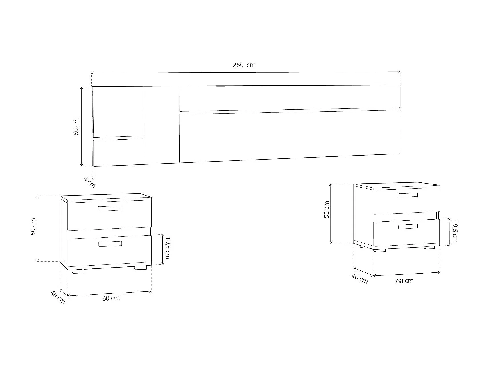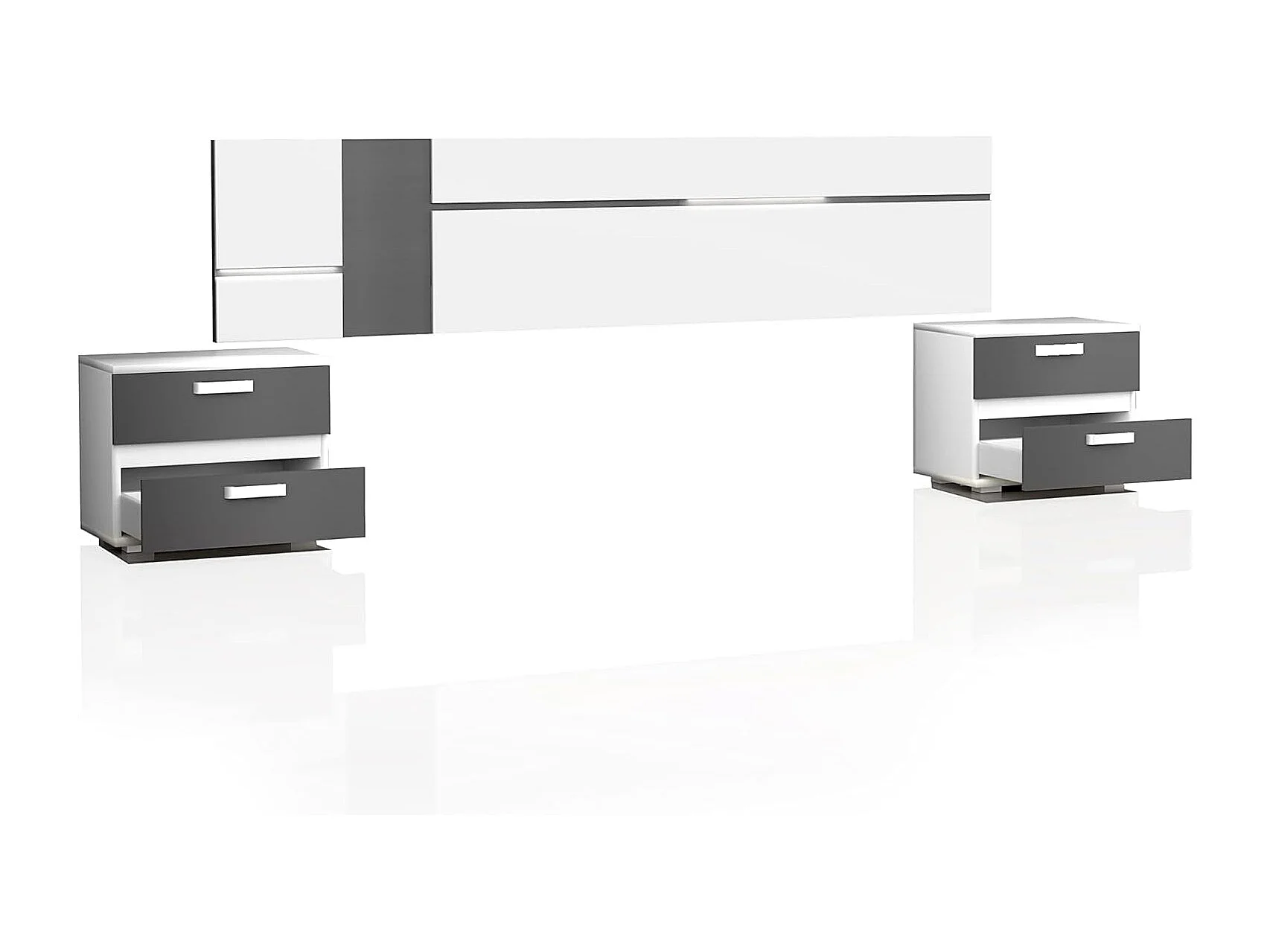 Conjunto Cabecero con Leds y 2 Mesitas de Noche, Dormitorio Matrimonio, Dormitorio Completo, Acabado en Blanco y Grafito – Meyvaser