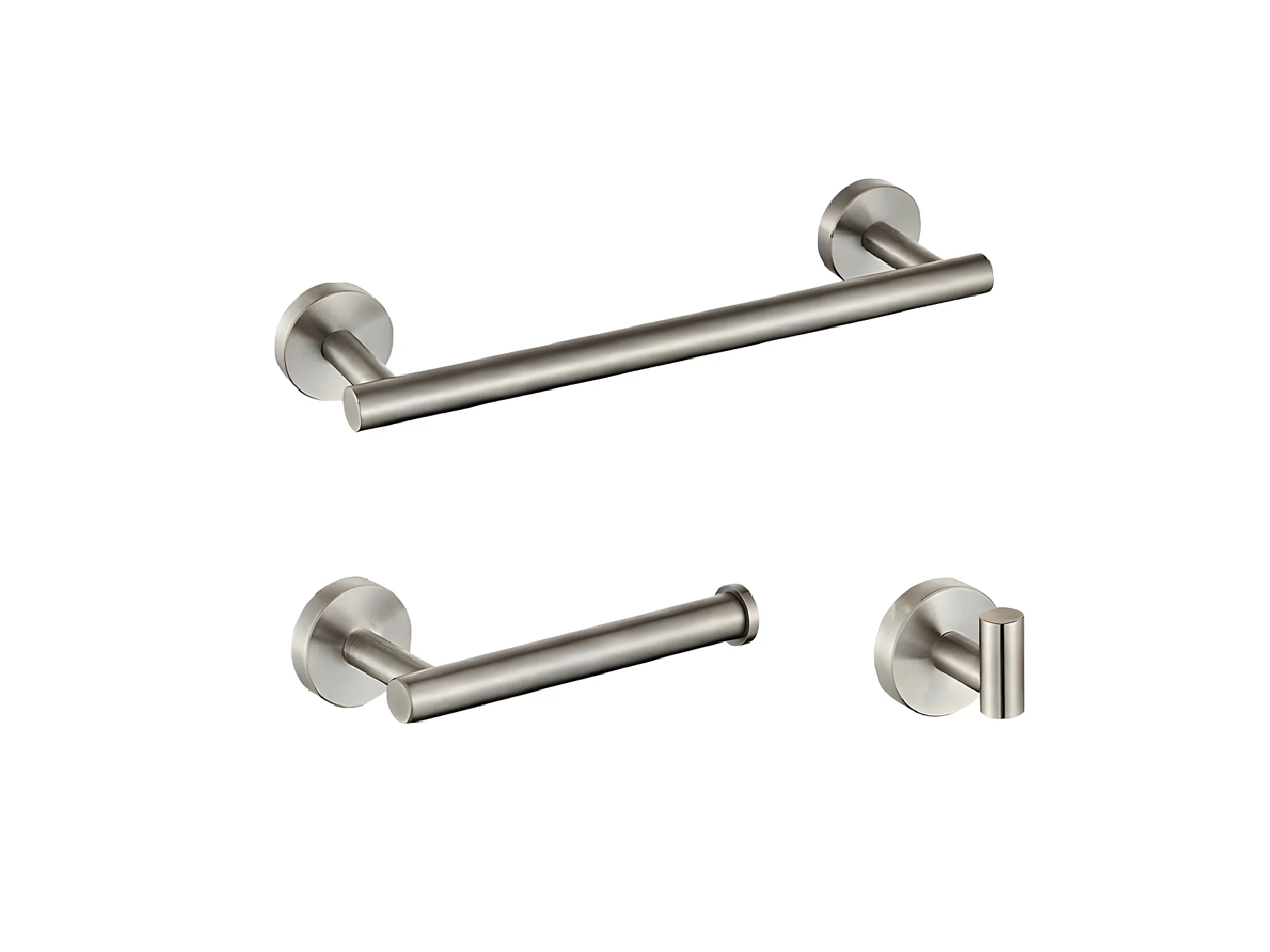 Conjunto CHARLES 30 acero cepillado Toallero + portarrollos + 1 percha
