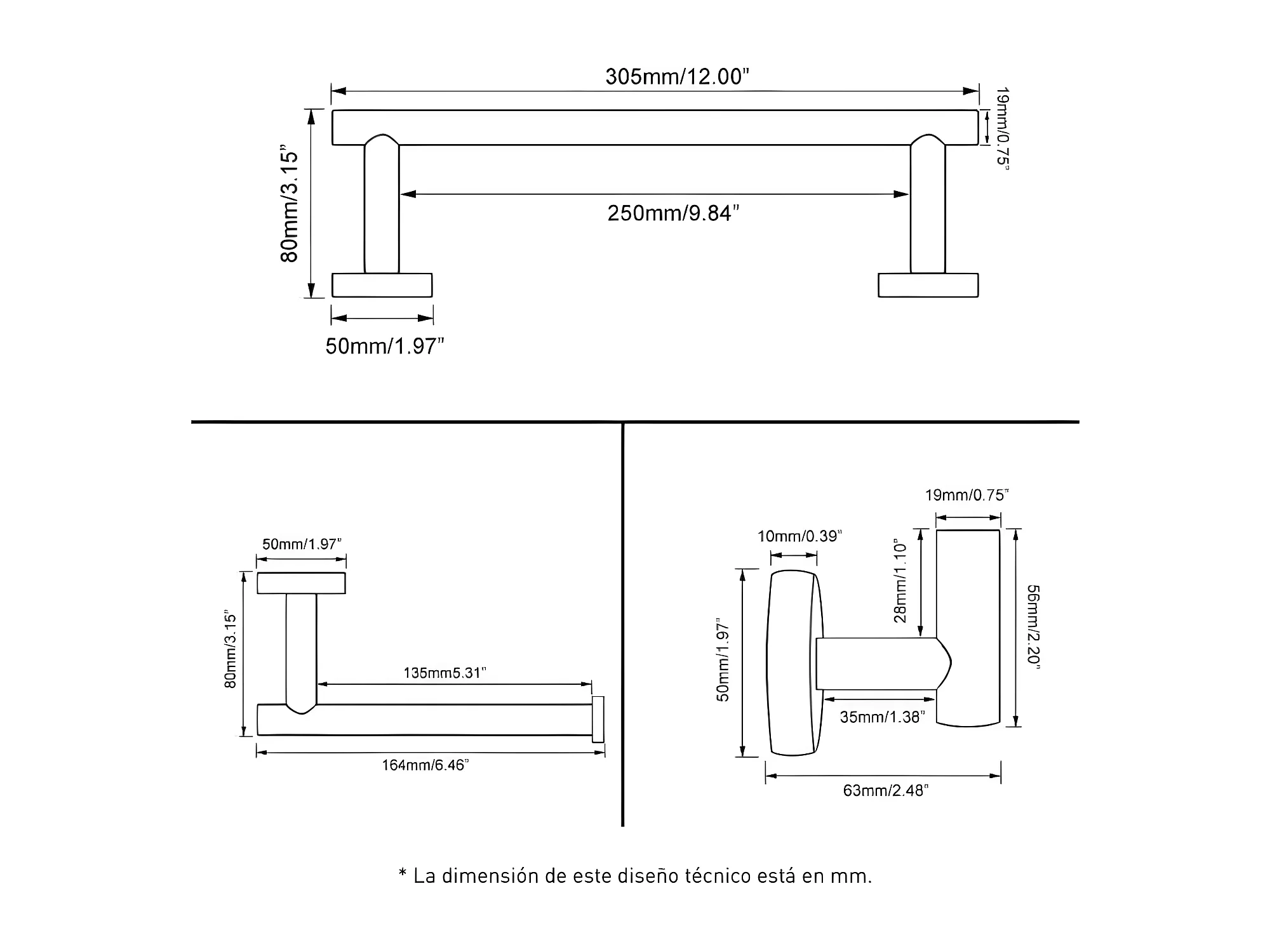 Conjunto CHARLES 30 cromado Toallero + portarrollos + 2 perchas