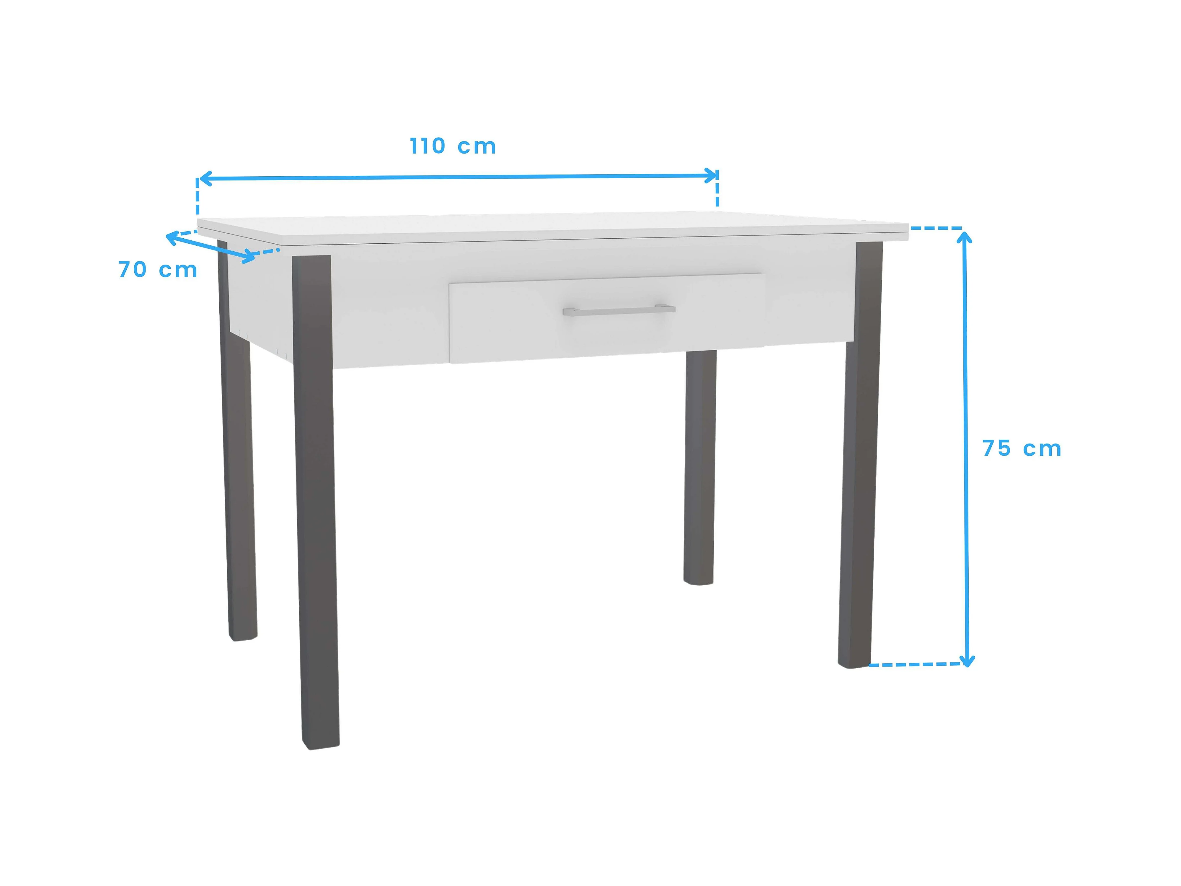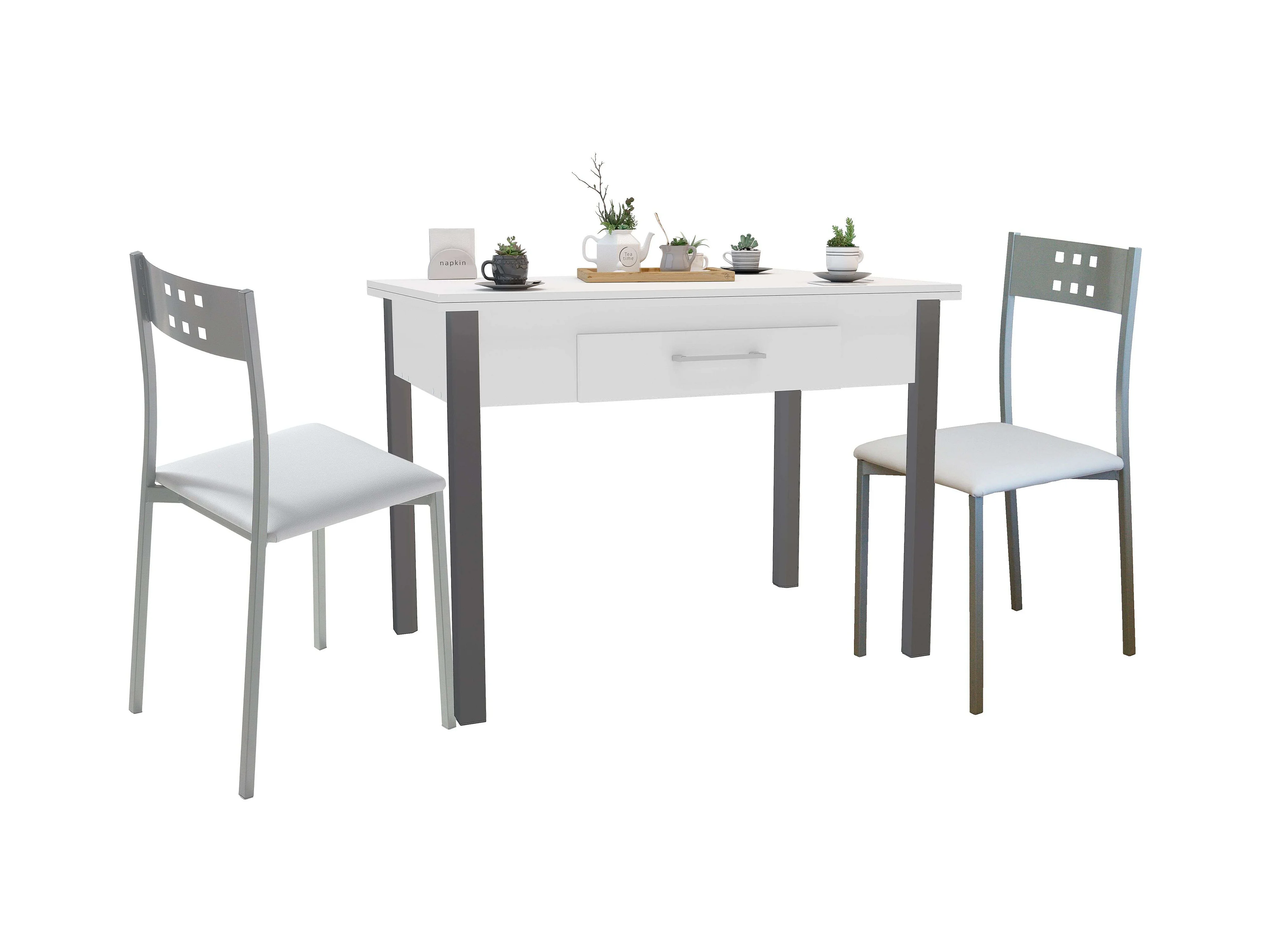 Conjunto cocina mesa extensible 110-140 cm blanco/gris con 2 sillas Costa