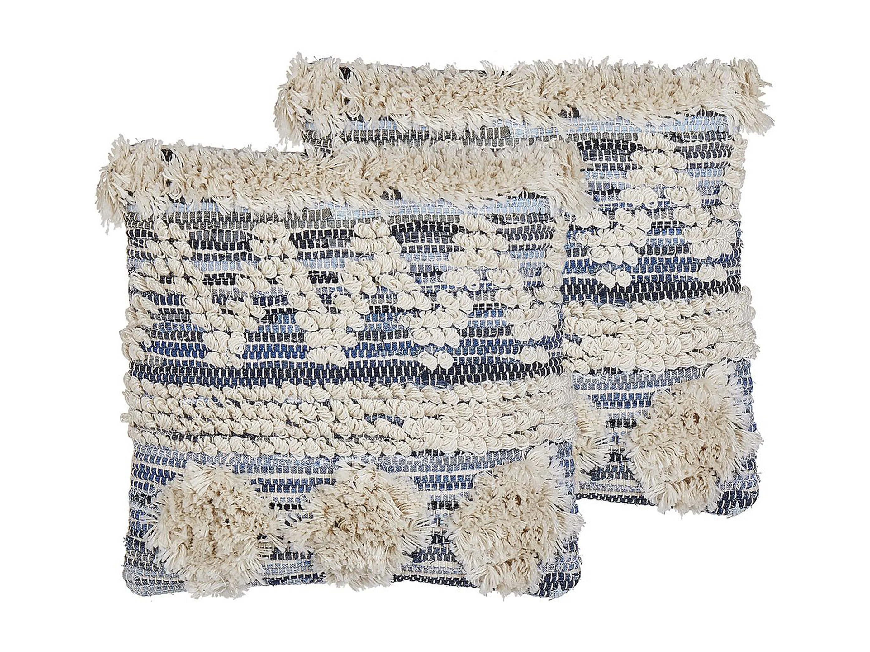 Conjunto de 2 cojines decorativos JACARANDA Algodón 45 x 45 cm Azul Patrón geométrico