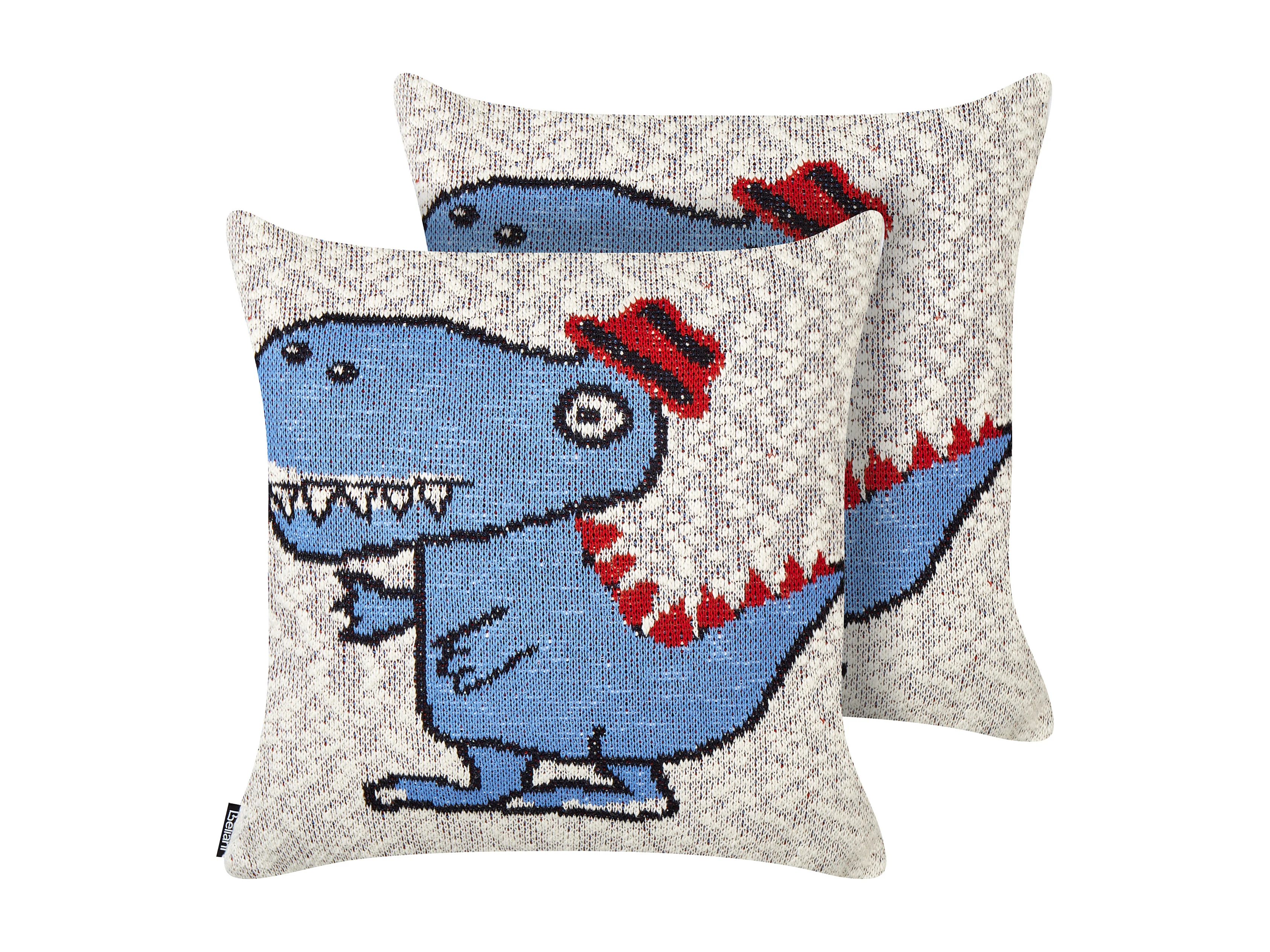 Conjunto de 2 cojines de algodón beige y azul motivo dinosaurio 45 x 45 cm GAMBIR
