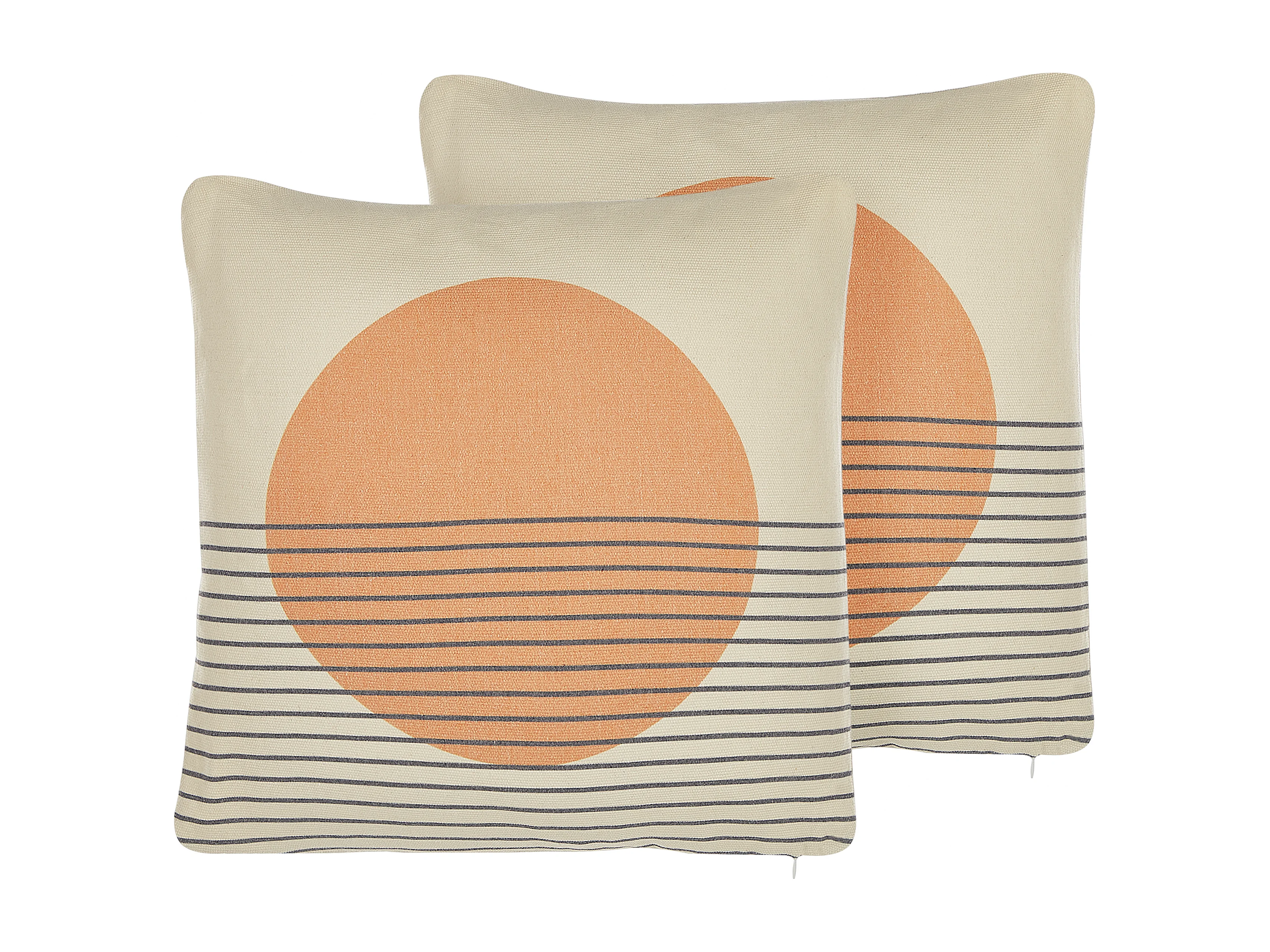 Conjunto de 2 cojines decorativos BANYAN Algodón 45 x 45 cm Arena Patrón geométrico