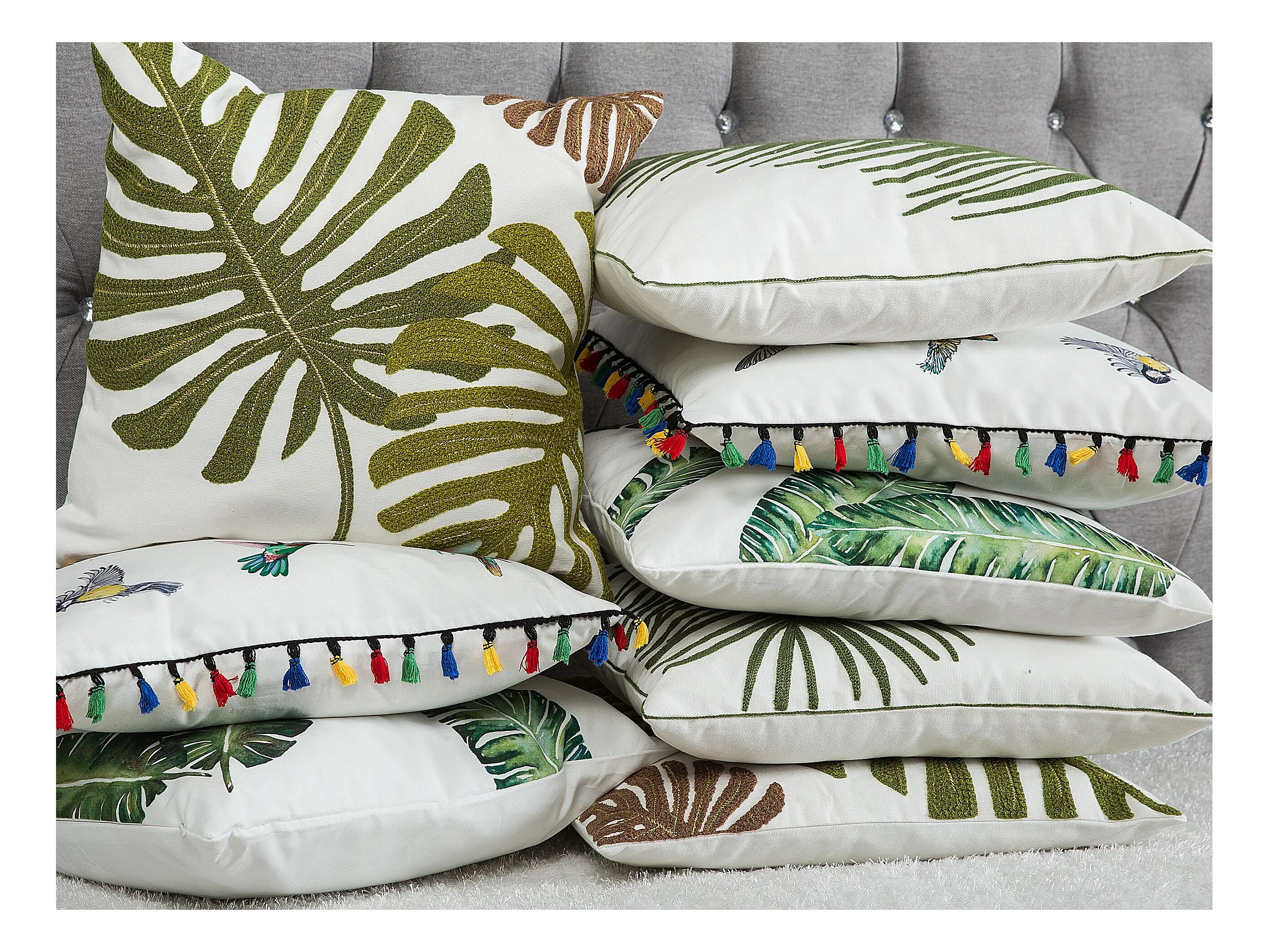 Conjunto de 2 cojines blancos motivo pájaros 45 x 45 cm MALLOW