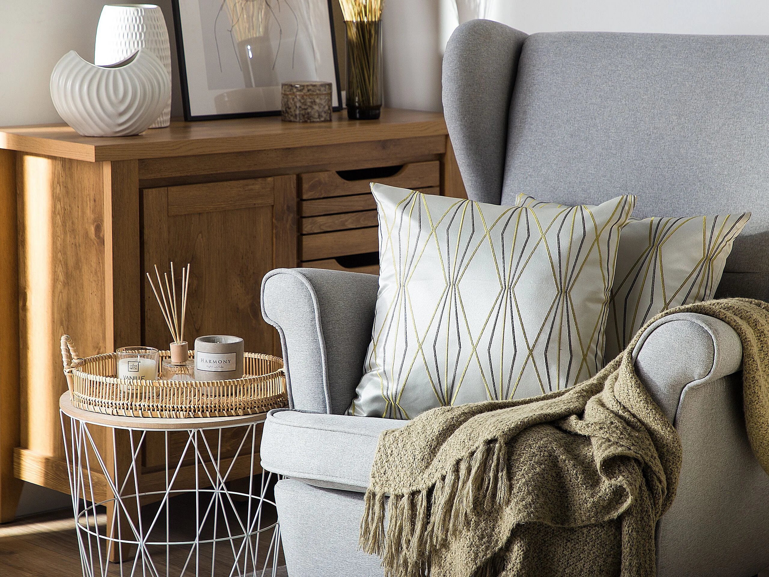 Conjunto de 2 cojines decorativos FENNEL 45 x 45 cm Blanco Patrón geométrico