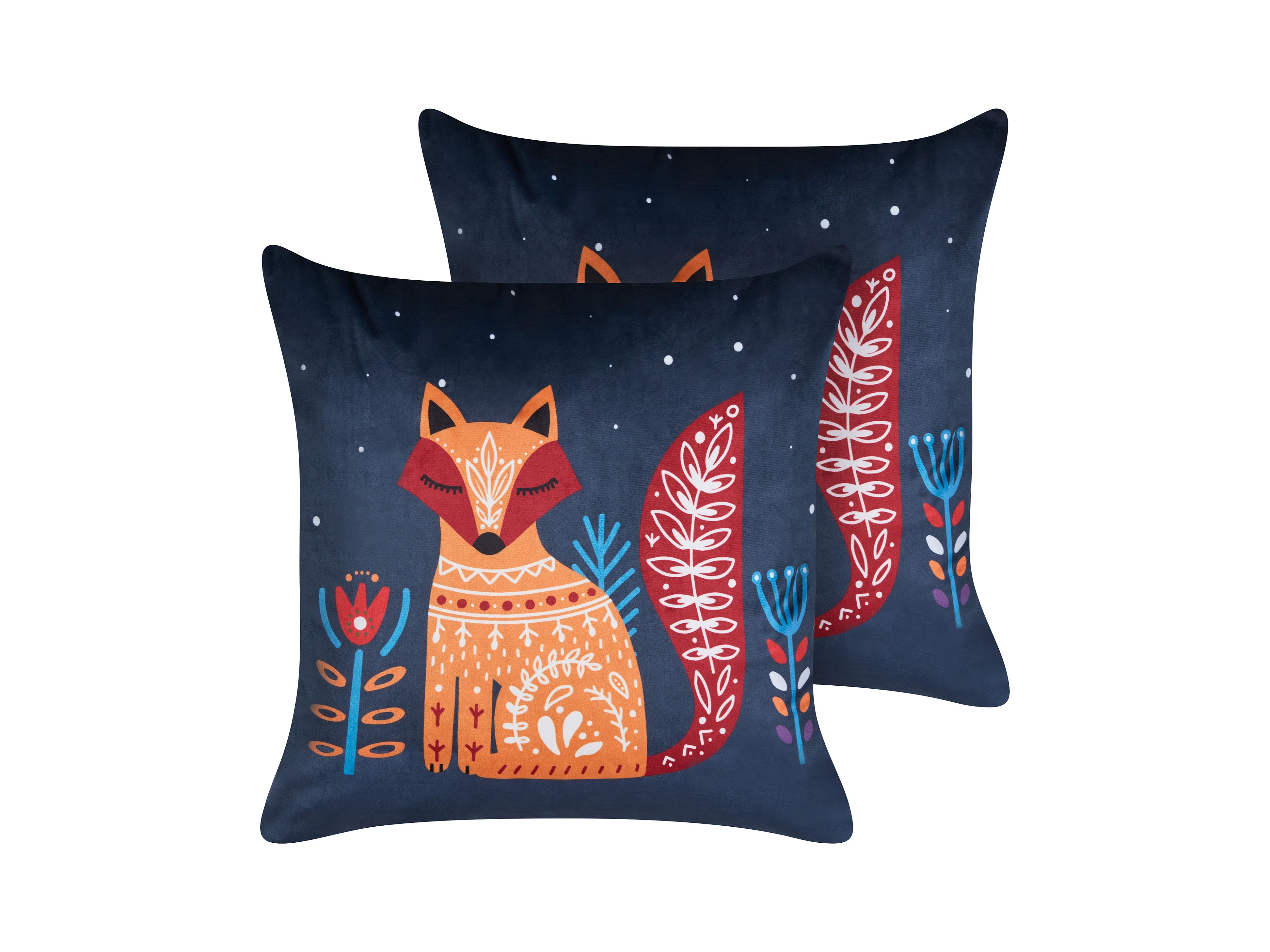 Conjunto de 2 cojines de terciopelo motivo zorro 45 x 45 cm azul oscuro FIRESPIKE