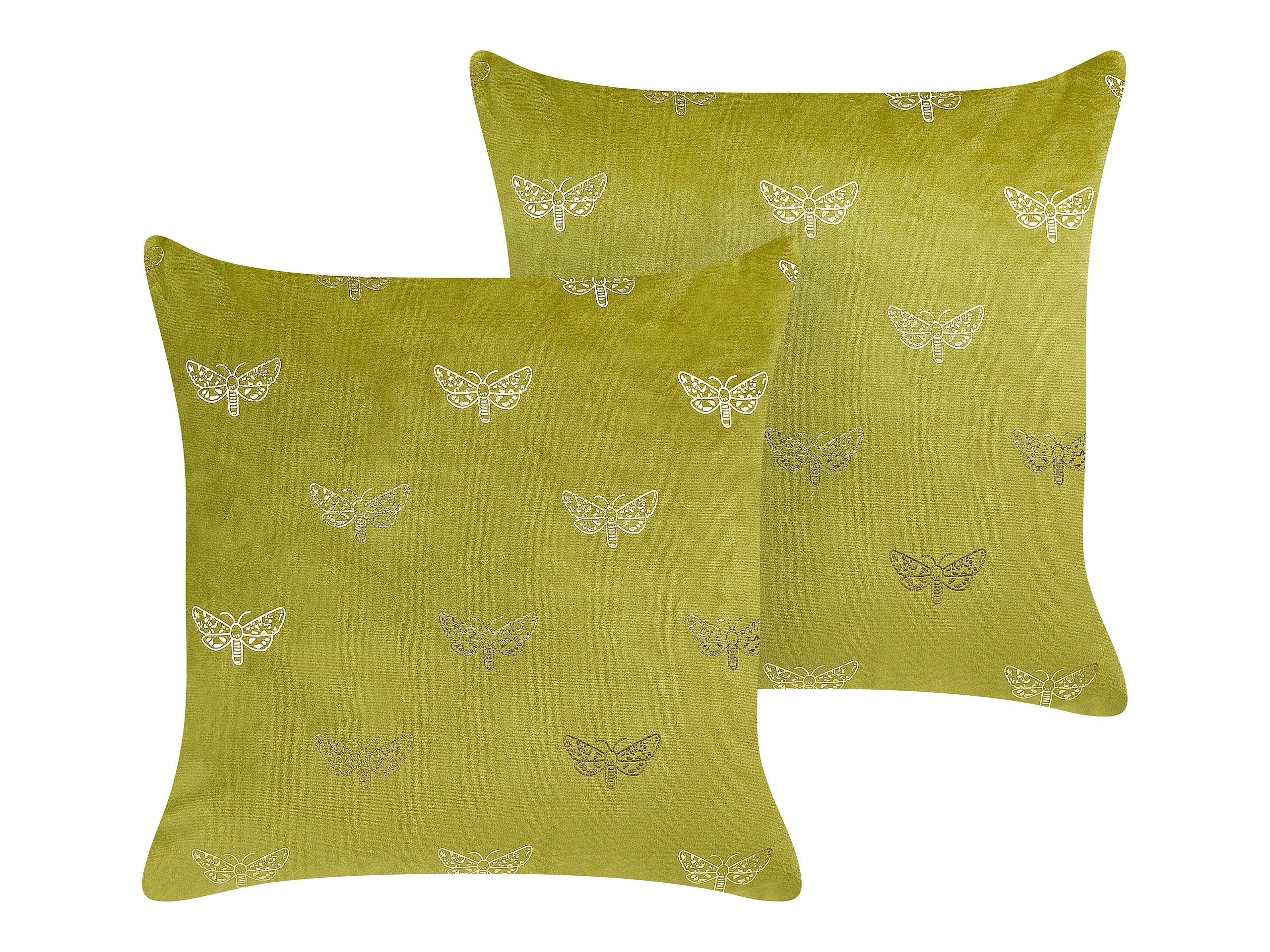 Conjunto de 2 cojines decorativos YUZURI Terciopelo 45 x 45 cm Verde claro Patrón animal