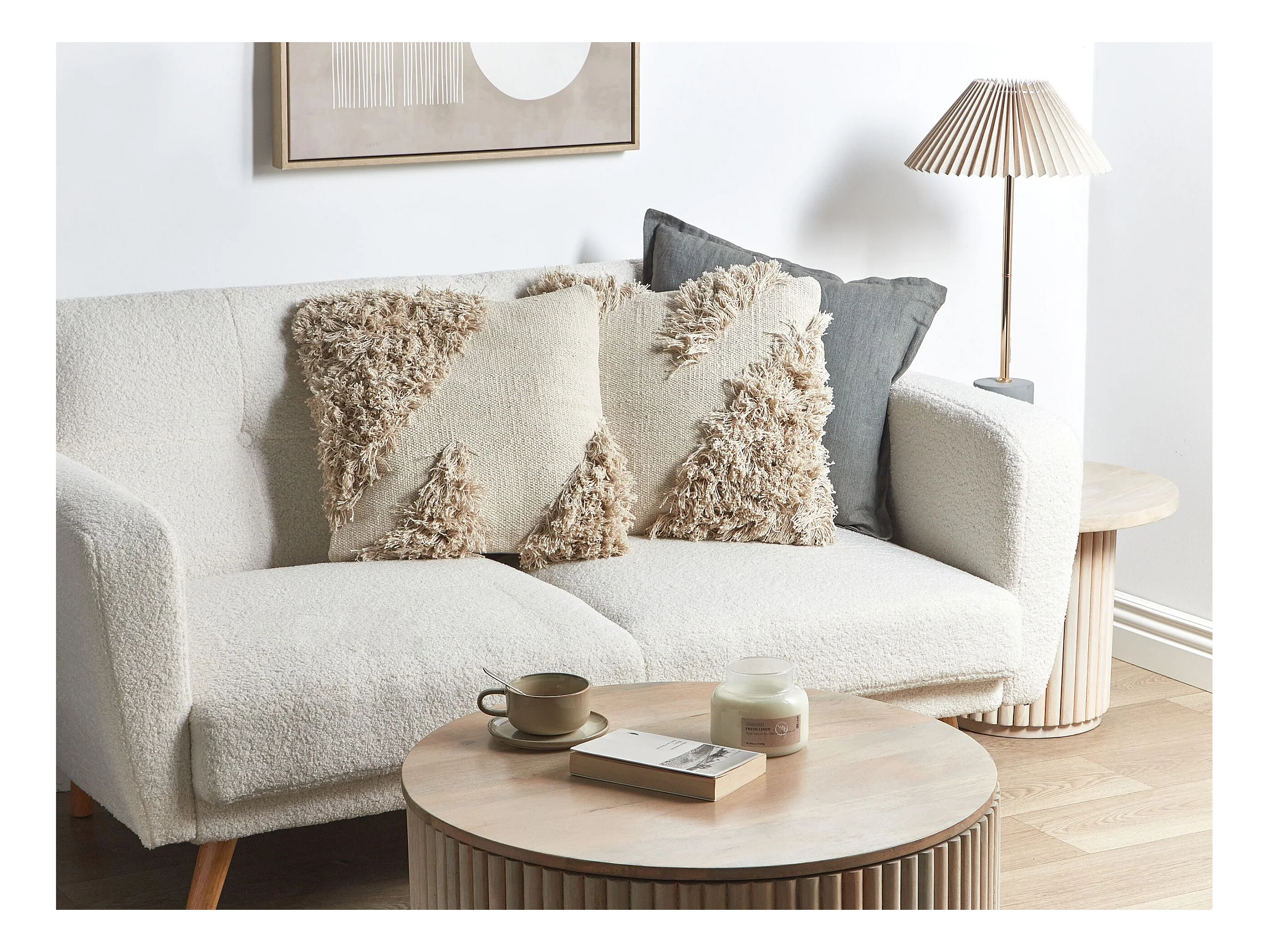 Conjunto de 2 cojines decorativos COLLOMIA Bouclé 45 x 45 cm Beige Patrón geométrico