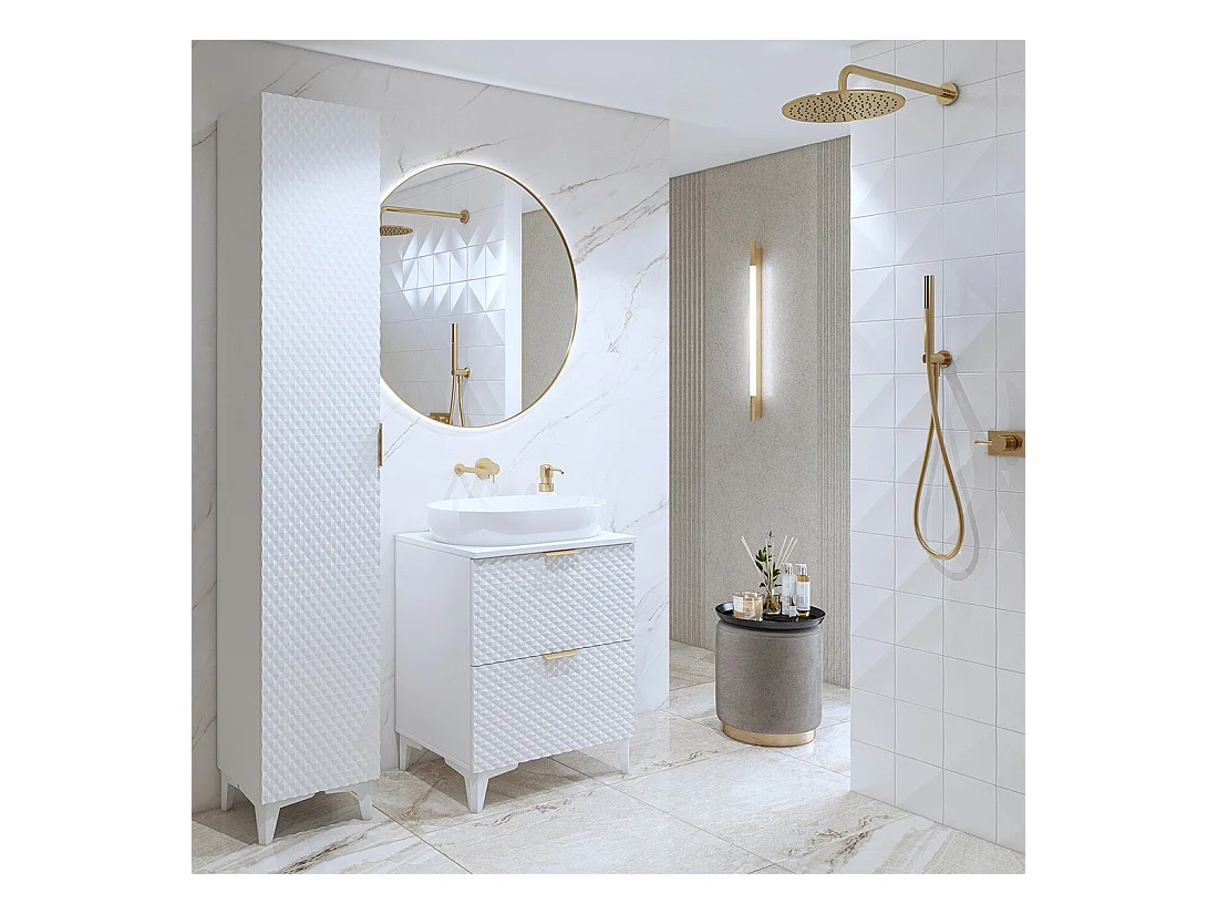 Conjunto de muebles de baño blanco colección BIRD. 2 columnas, mueble bajo lavabo, lavabo.