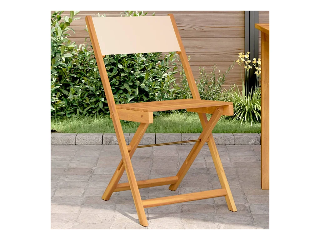 Conjunto de 2 sillas de jardín beige fabricadas en madera maciza de acacia y tela.
