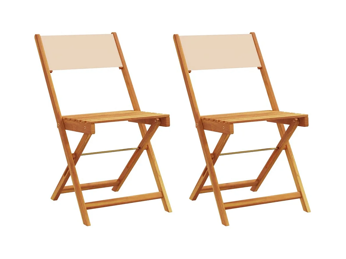 Conjunto de 2 sillas bistro beige en madera maciza de acacia y tela.
