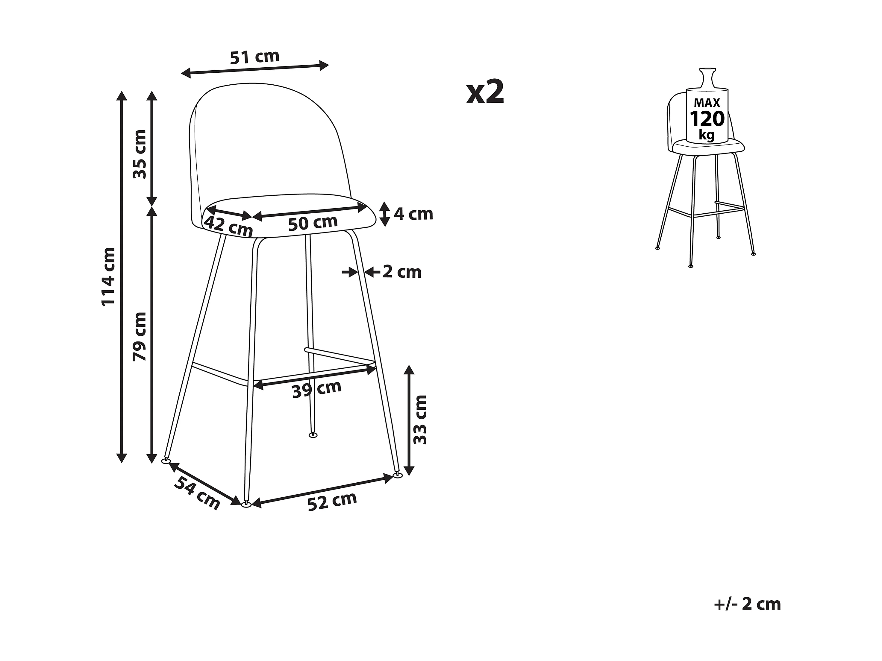 Conjunto de 2 sillas de bar ARCOLA Terciopelo Gris pardo