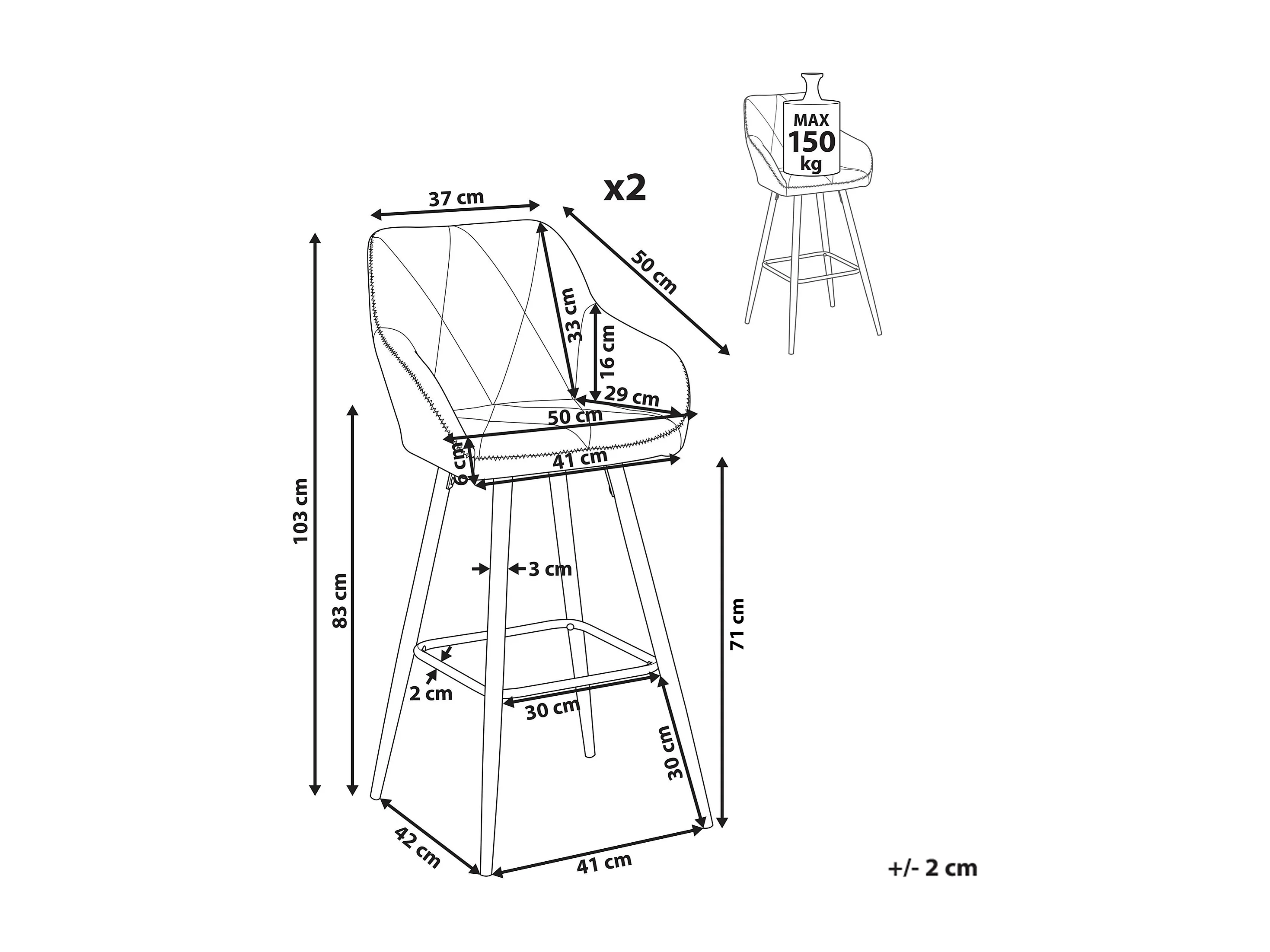 Conjunto de 2 sillas de bar DARIEN Marrón dorado