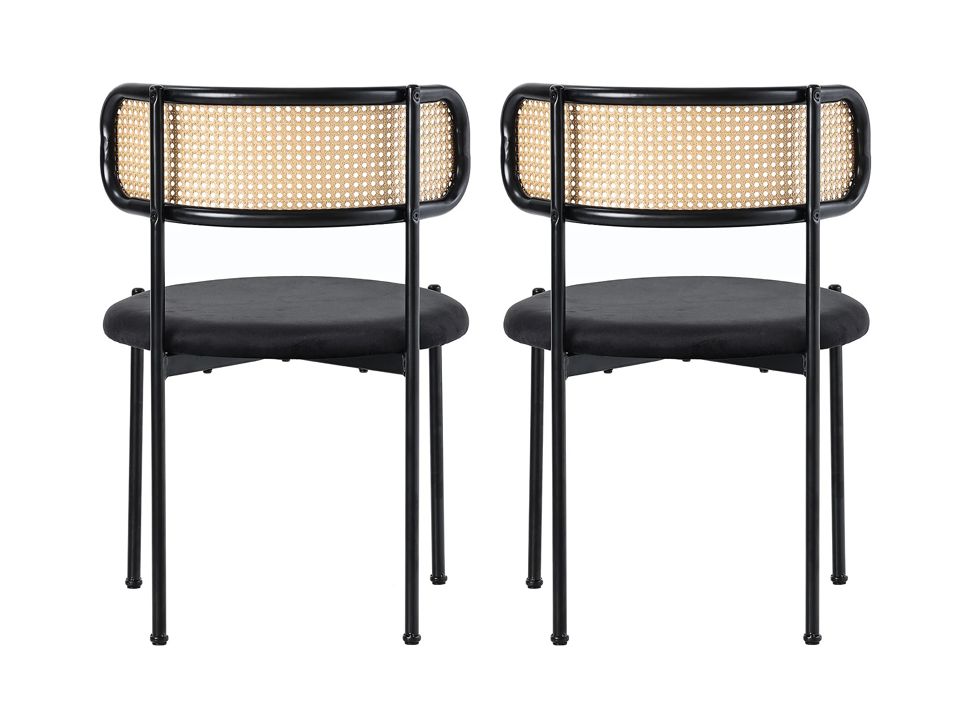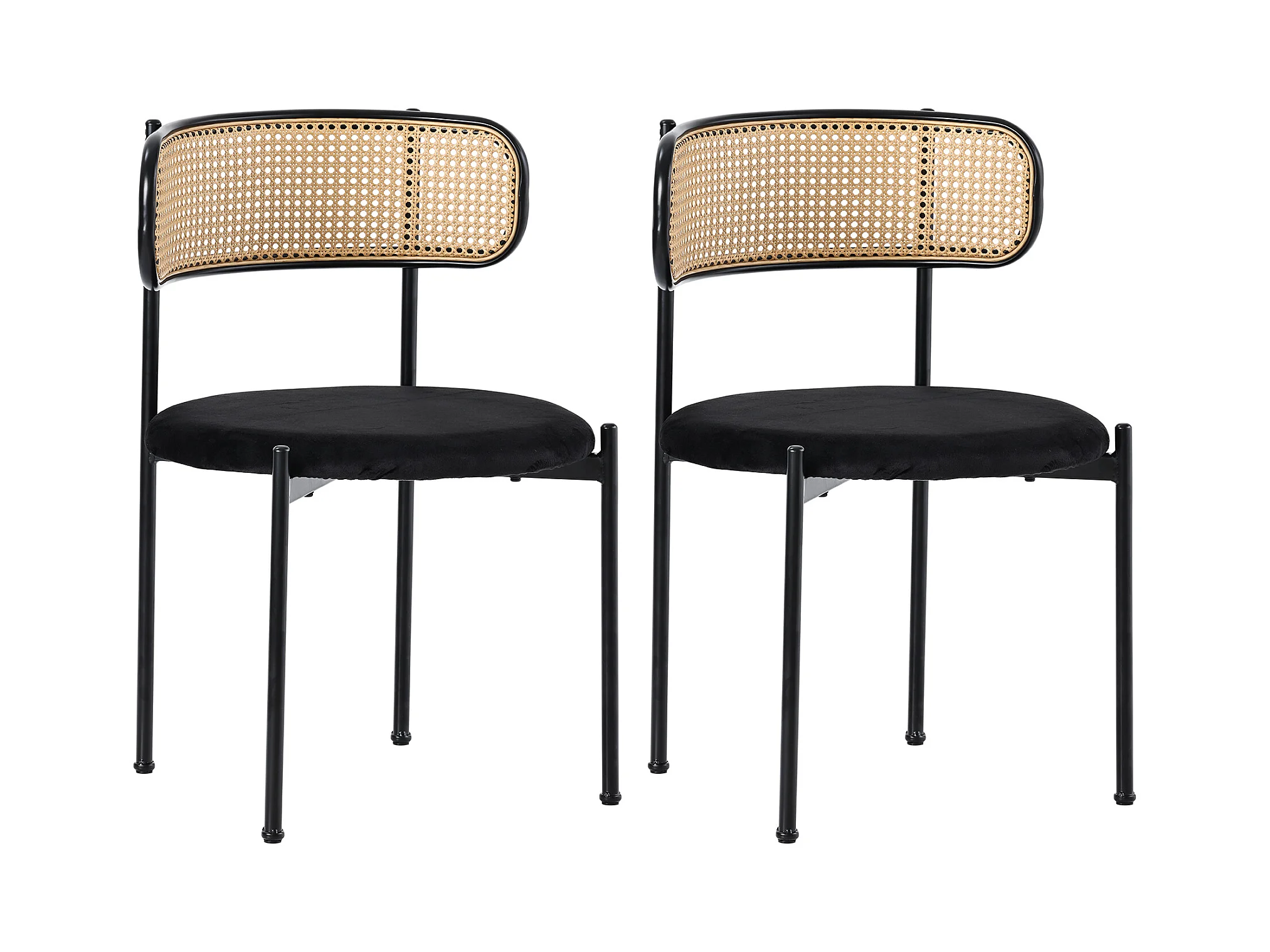 Conjunto de 2 sillas de comedor de terciopelo, con patas de metal, diseño moderno, ratán, color negro (largo x ancho x alto cm)