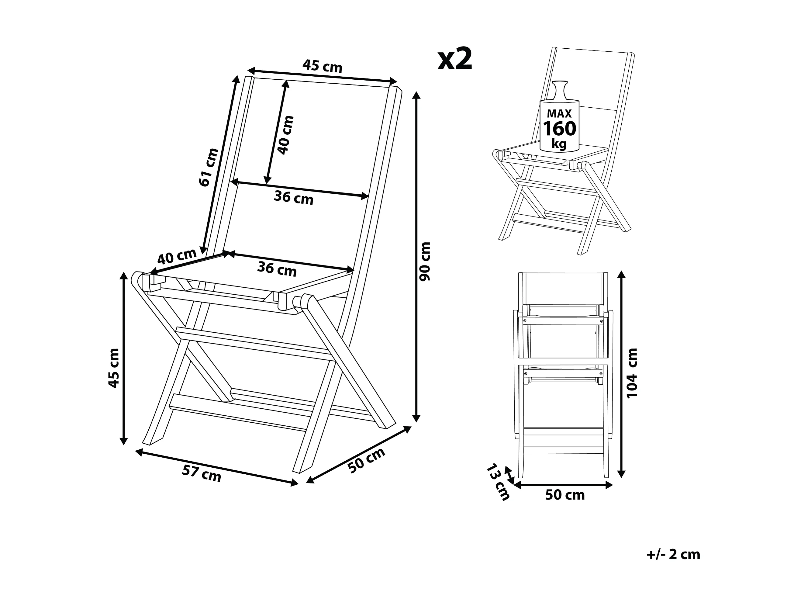 Sillas plegables de jardín 2 unidades madera de acacia maciza
