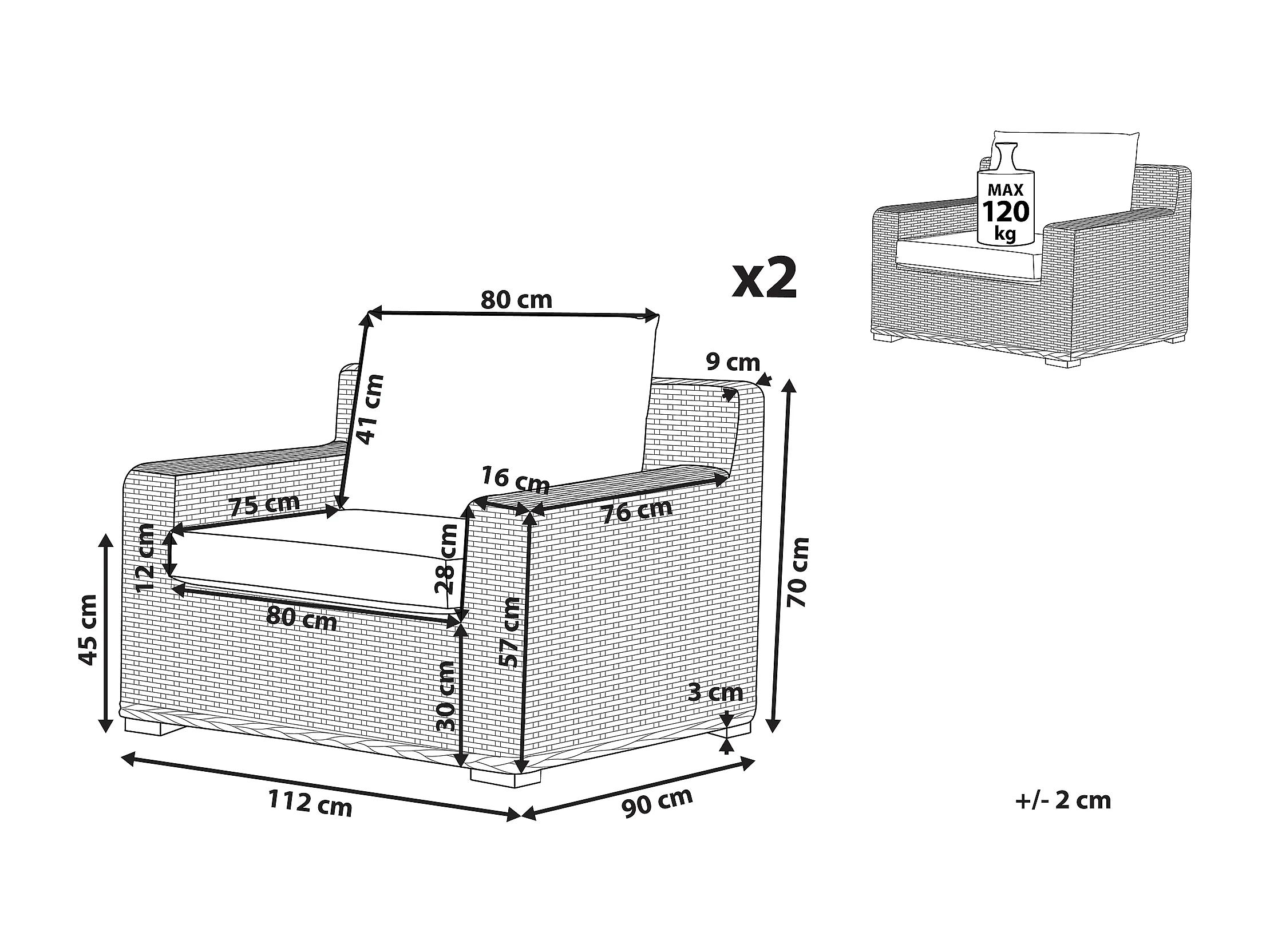 Conjunto de 2 sillones de jardín ARDEA Ratán Marrón claro