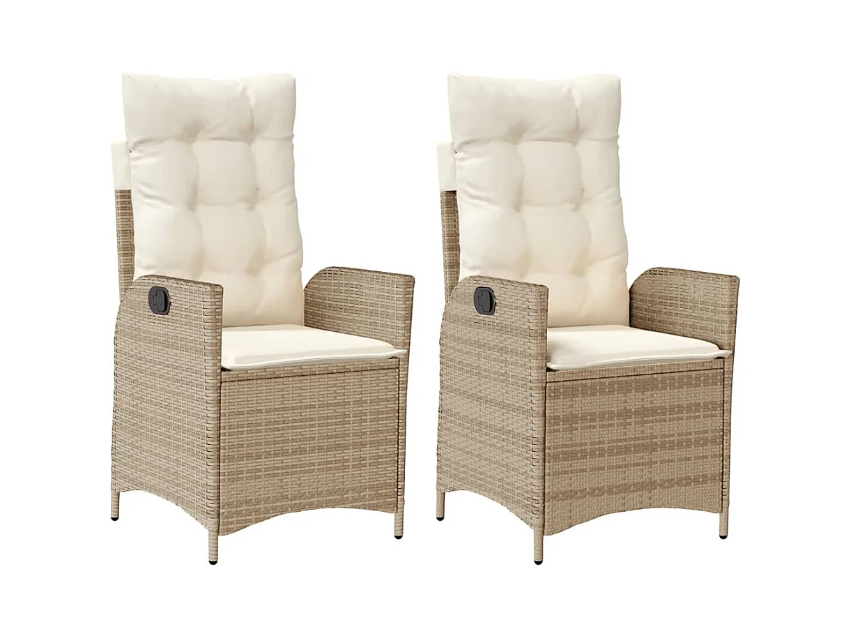 Conjunto de 2 sillas de jardín reclinables con cojines de ratán beige