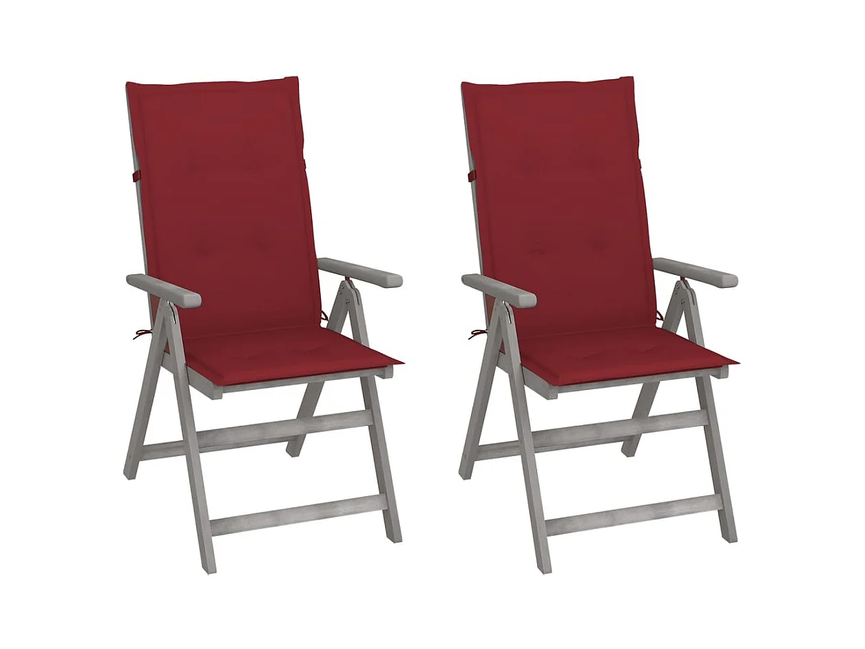 Conjunto de 2 sillas de jardín reclinables con cojines Madera de acacia