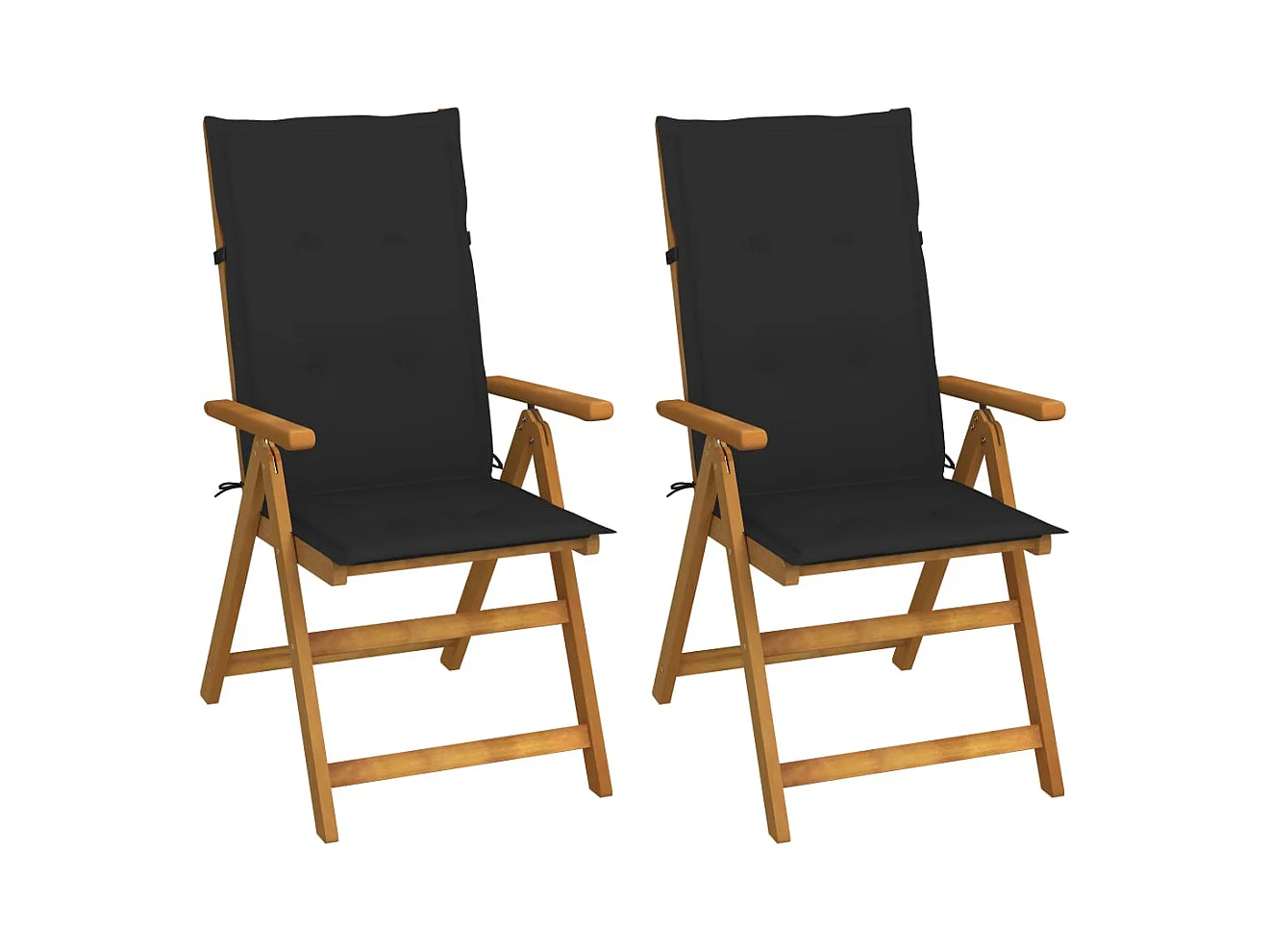 Conjunto de 2 sillas de jardín reclinables con cojines Madera de acacia