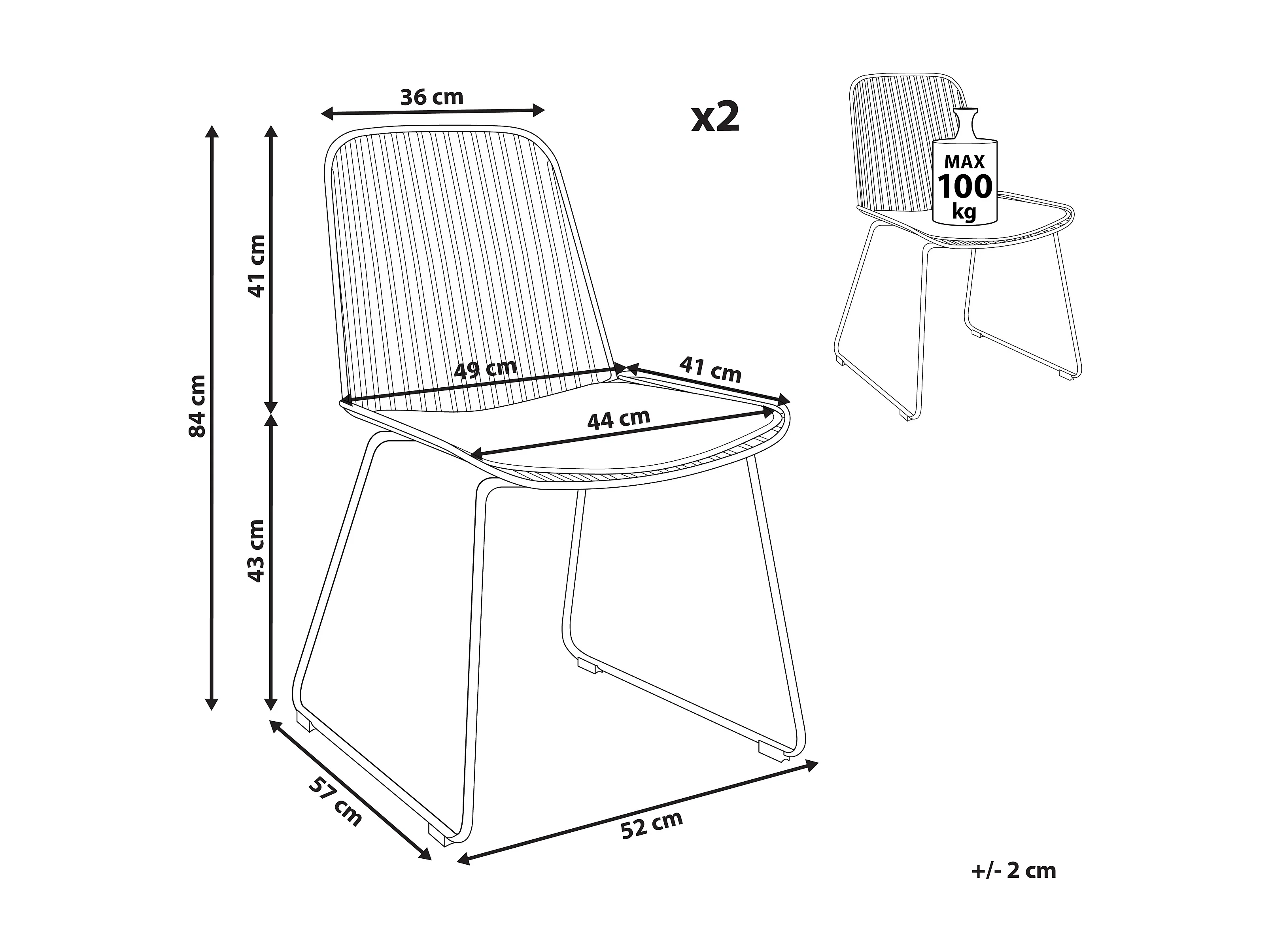 Conjunto de 2 sillas de comedor PENSACOLA Metal Negro