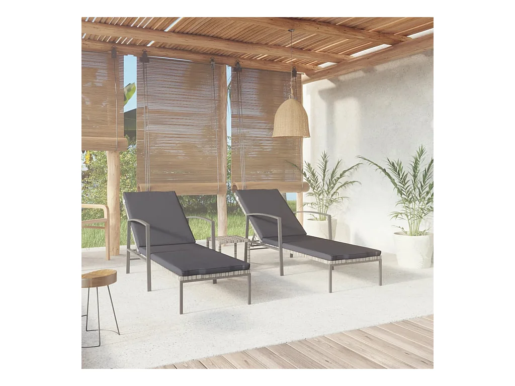 chaise longue con cojín gris 201x55x62cm resina tejida