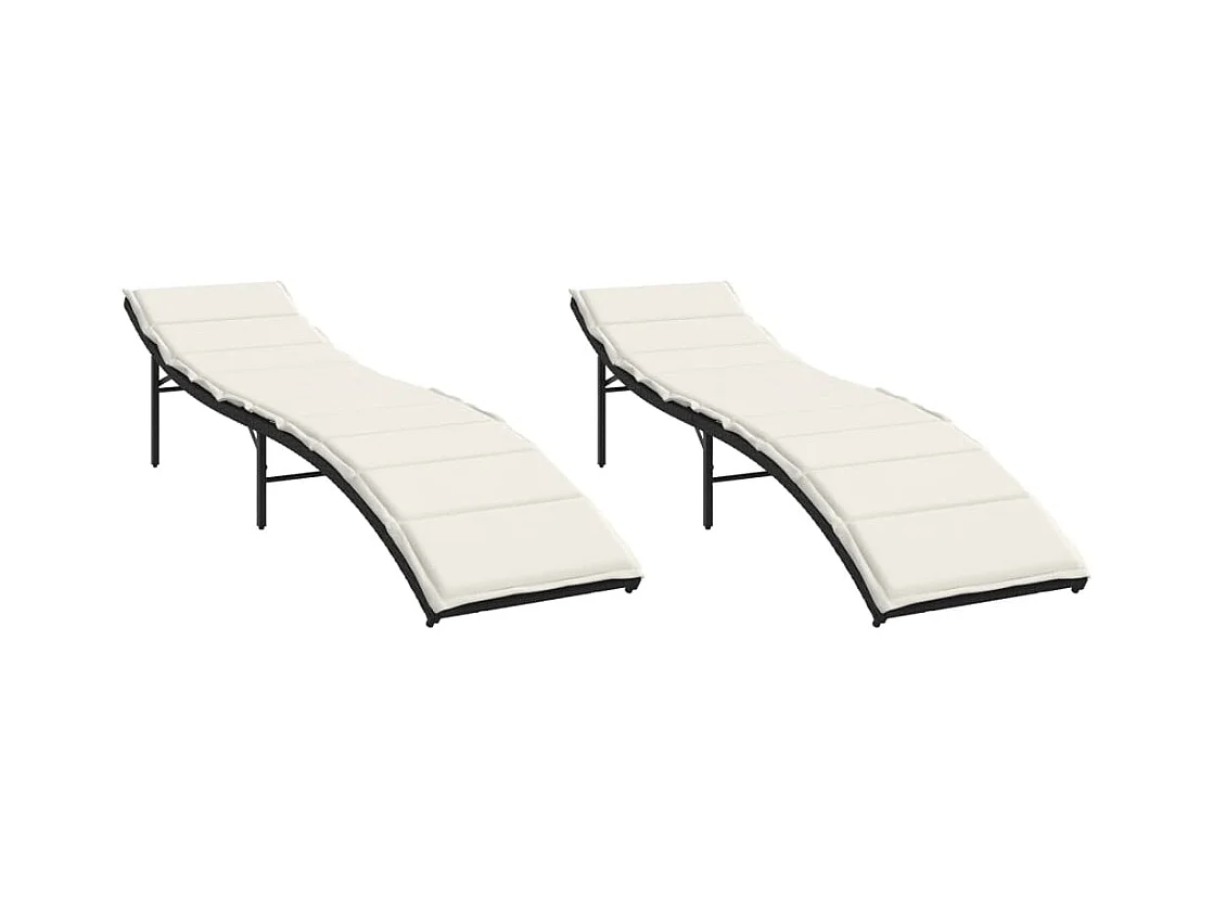 Conjunto de 2 tumbonas con cojines de mimbre negro
