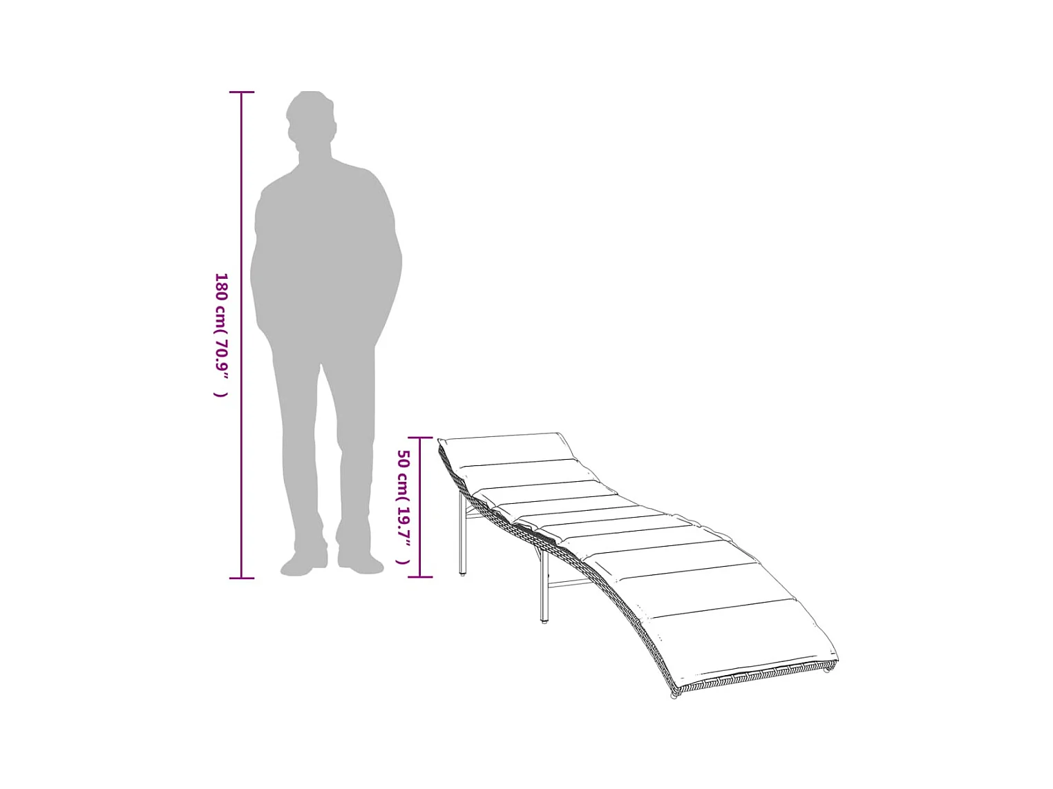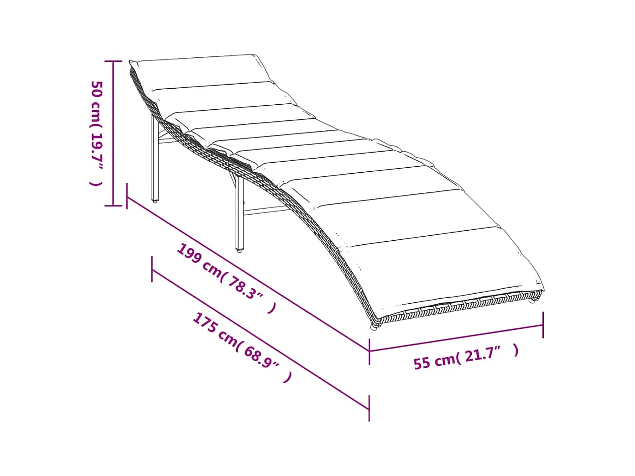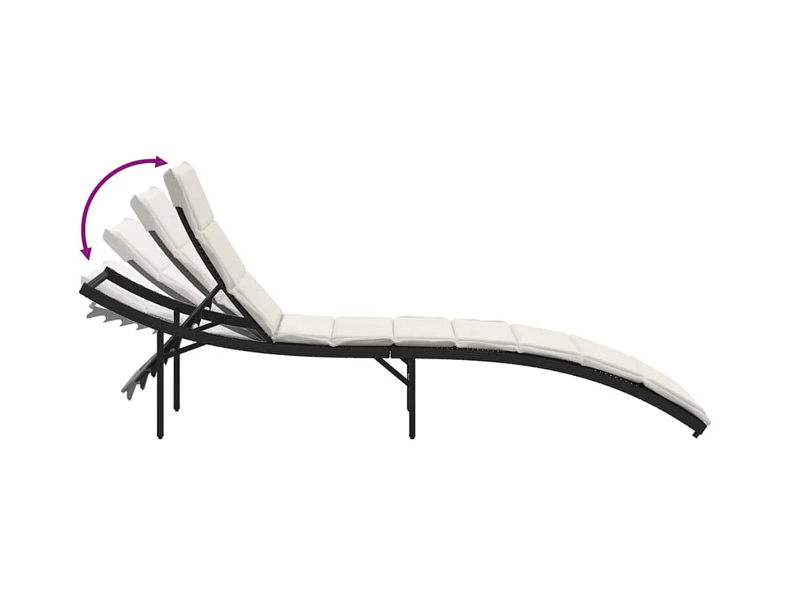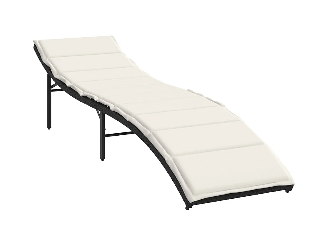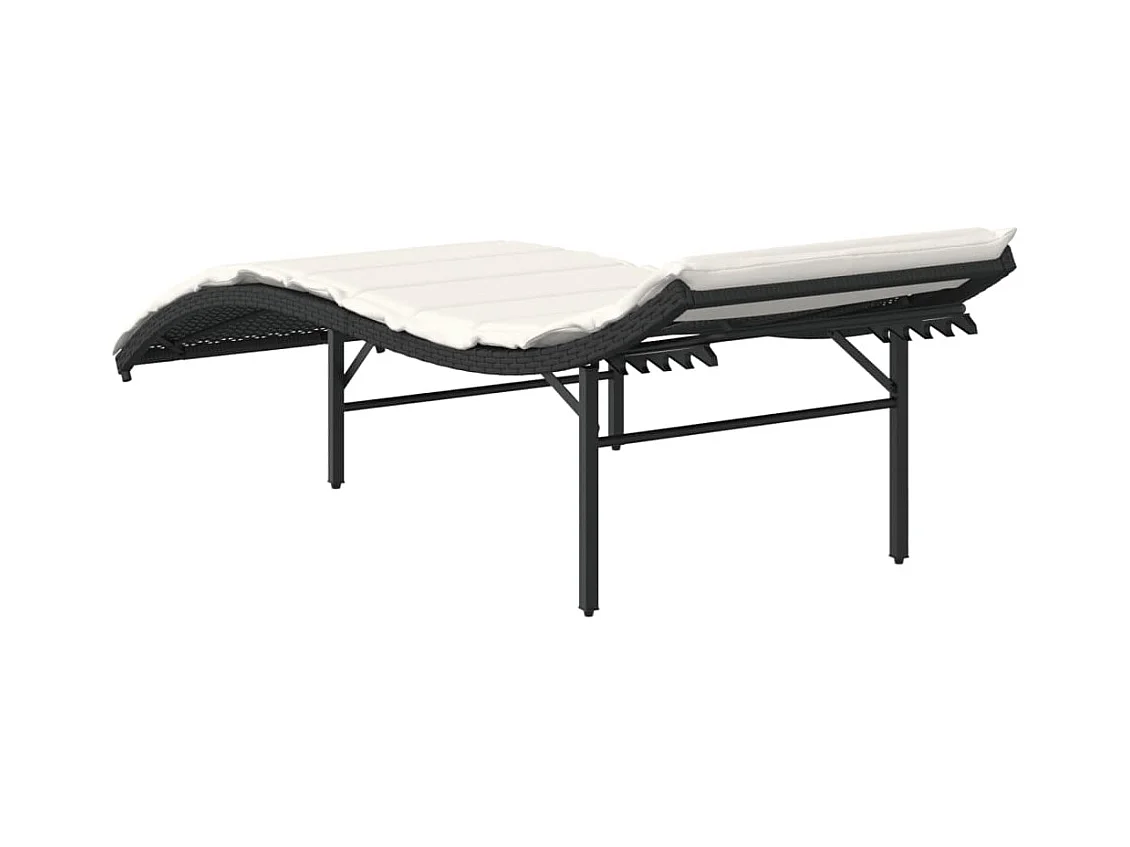 Chaise longue con cojín negro 55x199x50 cm resina tejida