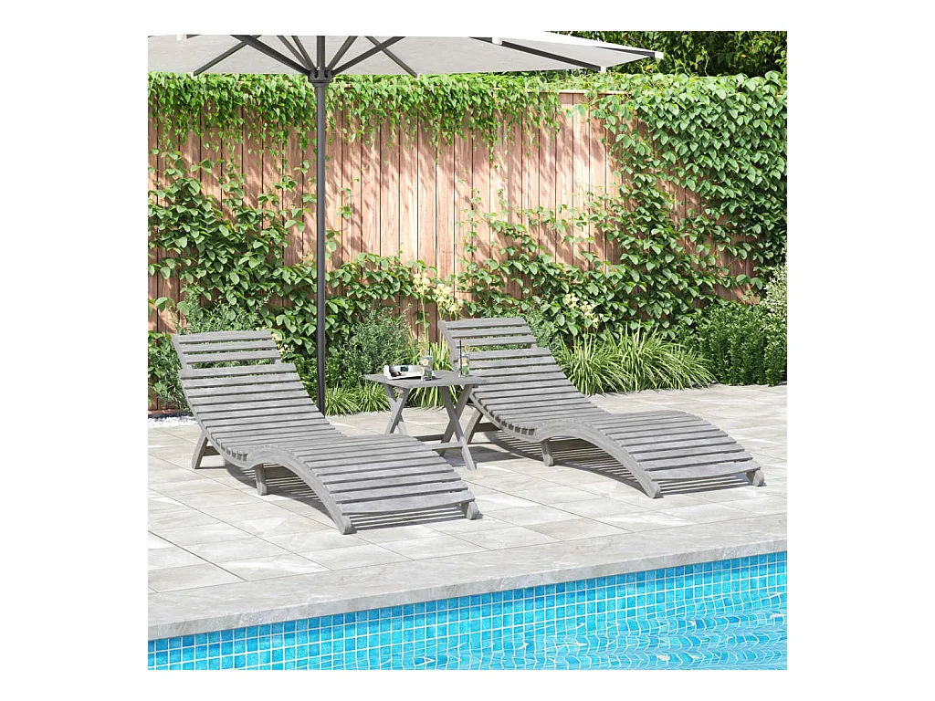 Conjunto de 2 tumbonas grises 184x55x64 cm madera maciza de acacia