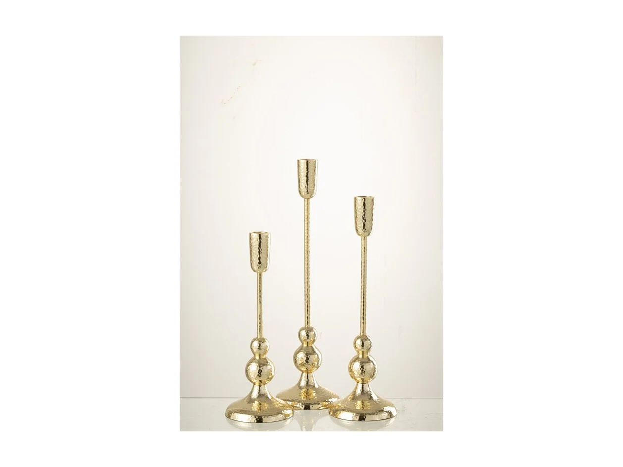 Conjunto de 3 candelabros de metal dorado de 10x10x38 cm