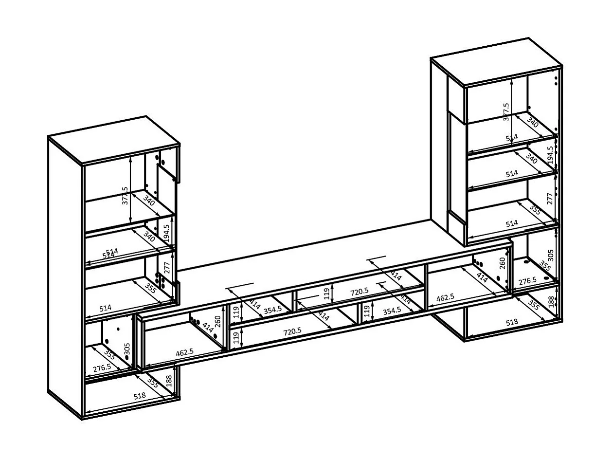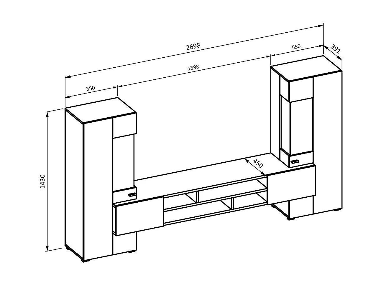 Conjunto de 3 muebles de salón colección KOBEE. Color negro y roble.