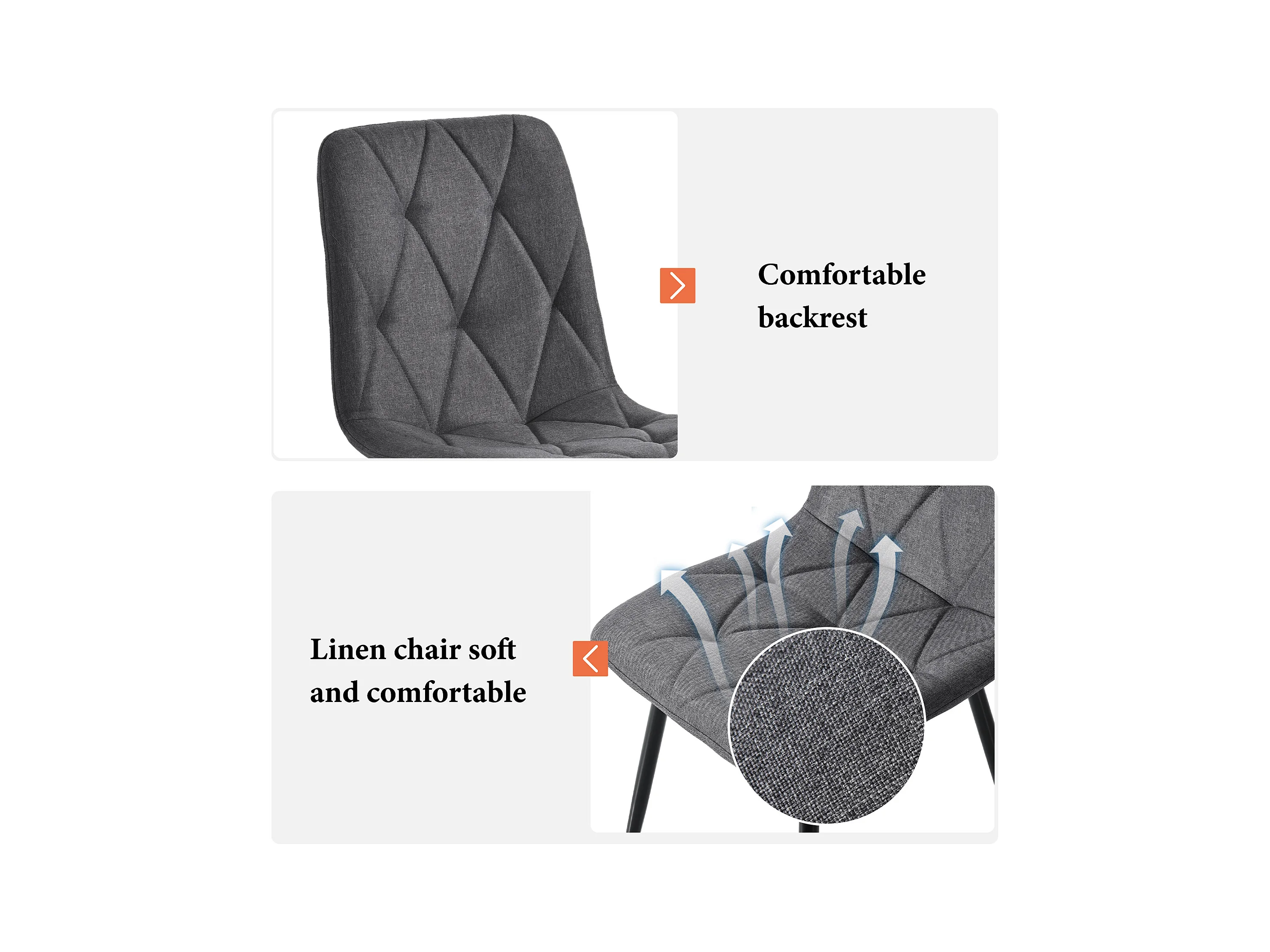 Conjunto de 4 sillas de comedor de diseño en tejido de lino gris oscuro con cómodo respaldo de metal 45x40x86 cm