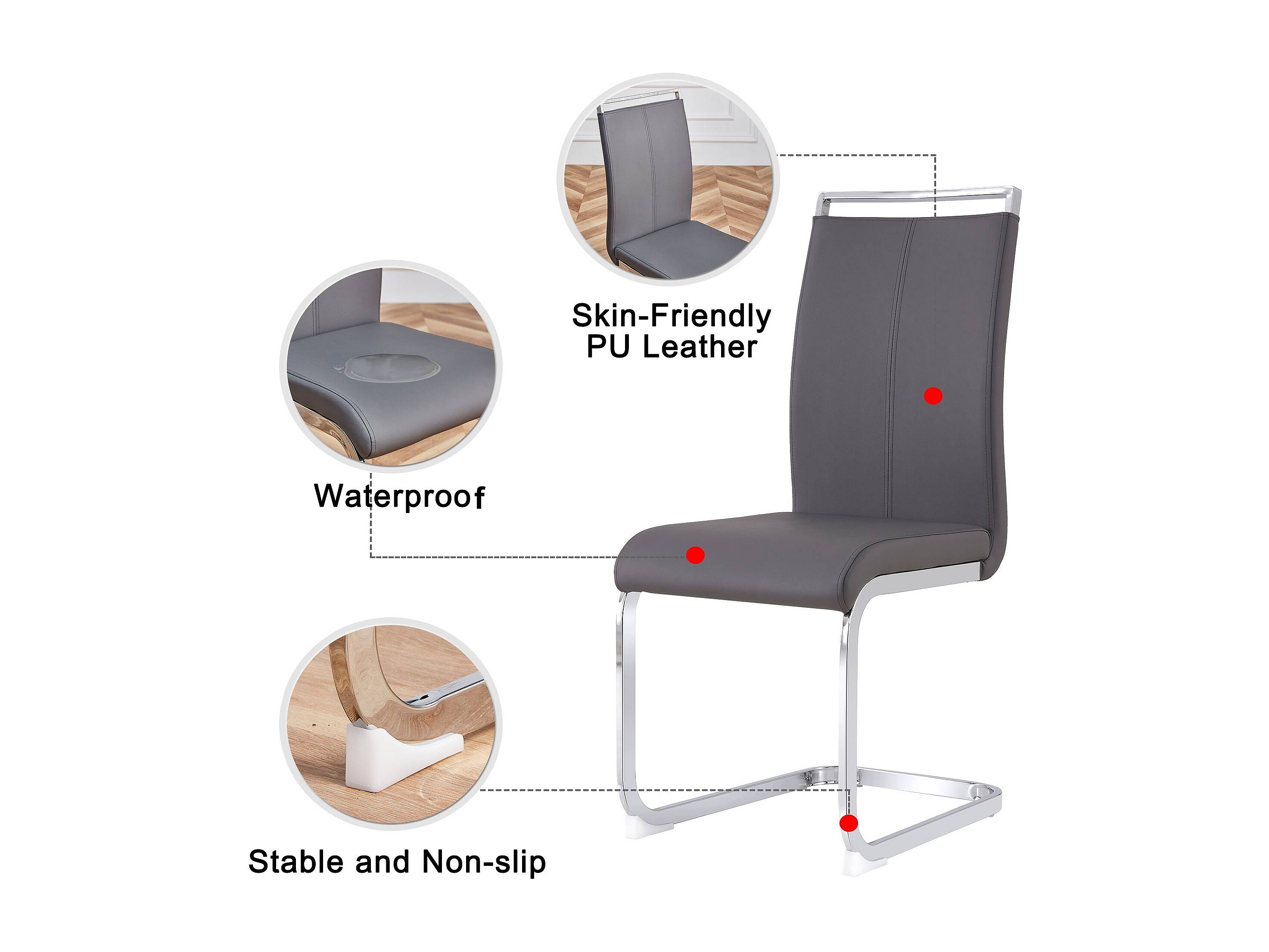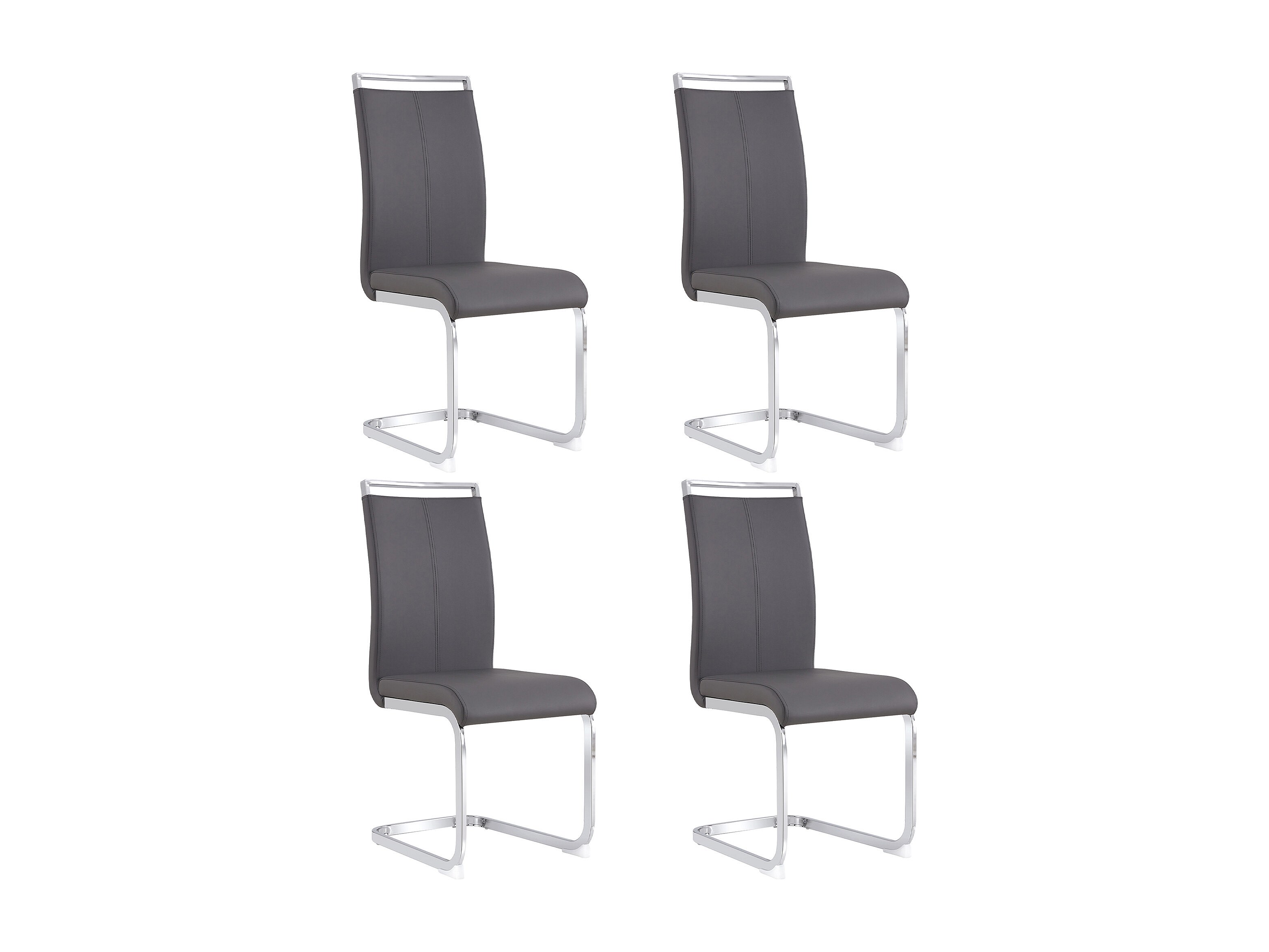 Conjunto de 4 sillas de diseño Freischwinger con base cromada y cómoda piel sintética gris, 48 cm