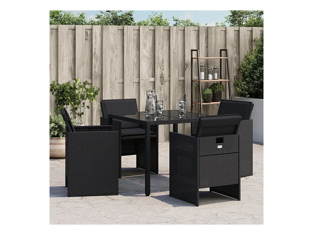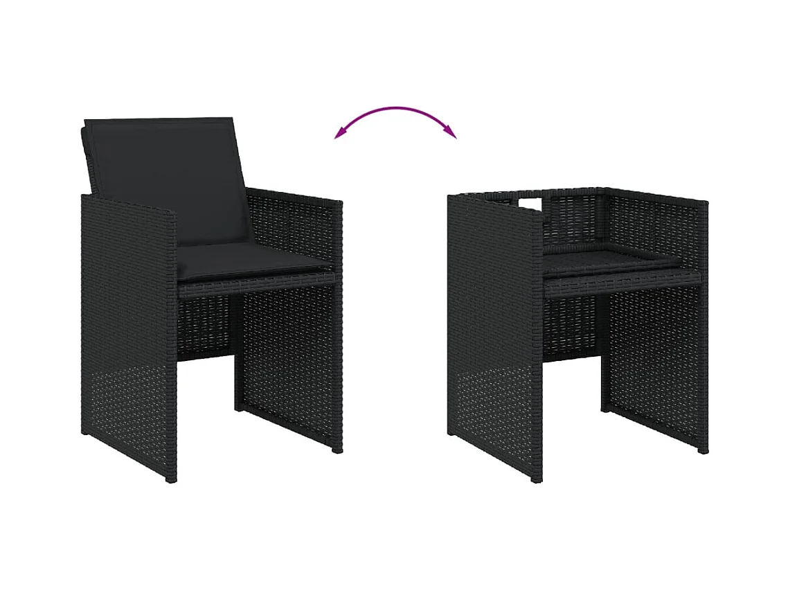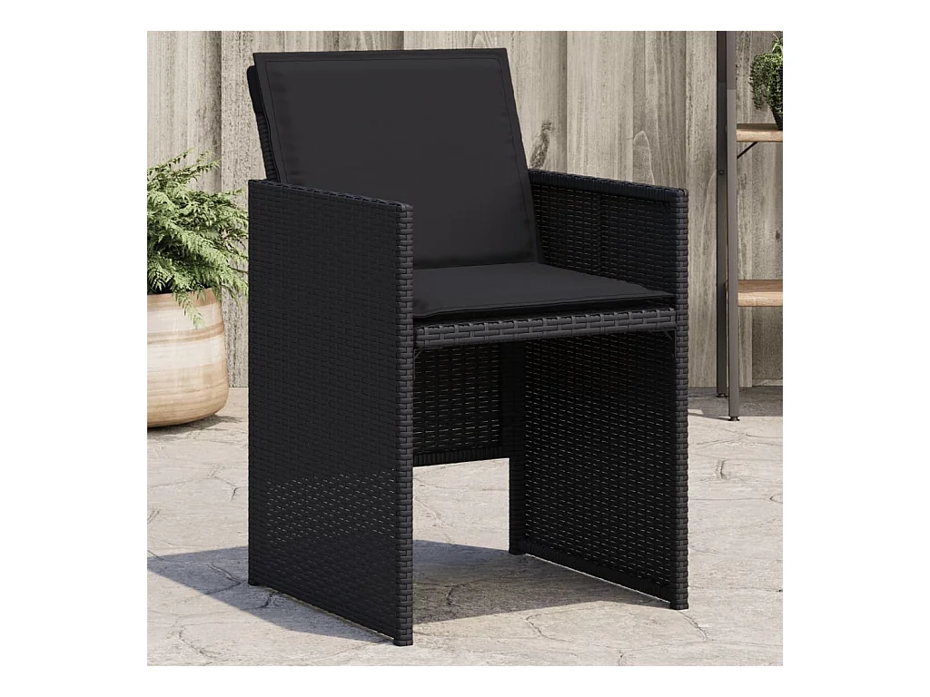 Conjunto de 4 sillas de jardín con cojines de mimbre negro