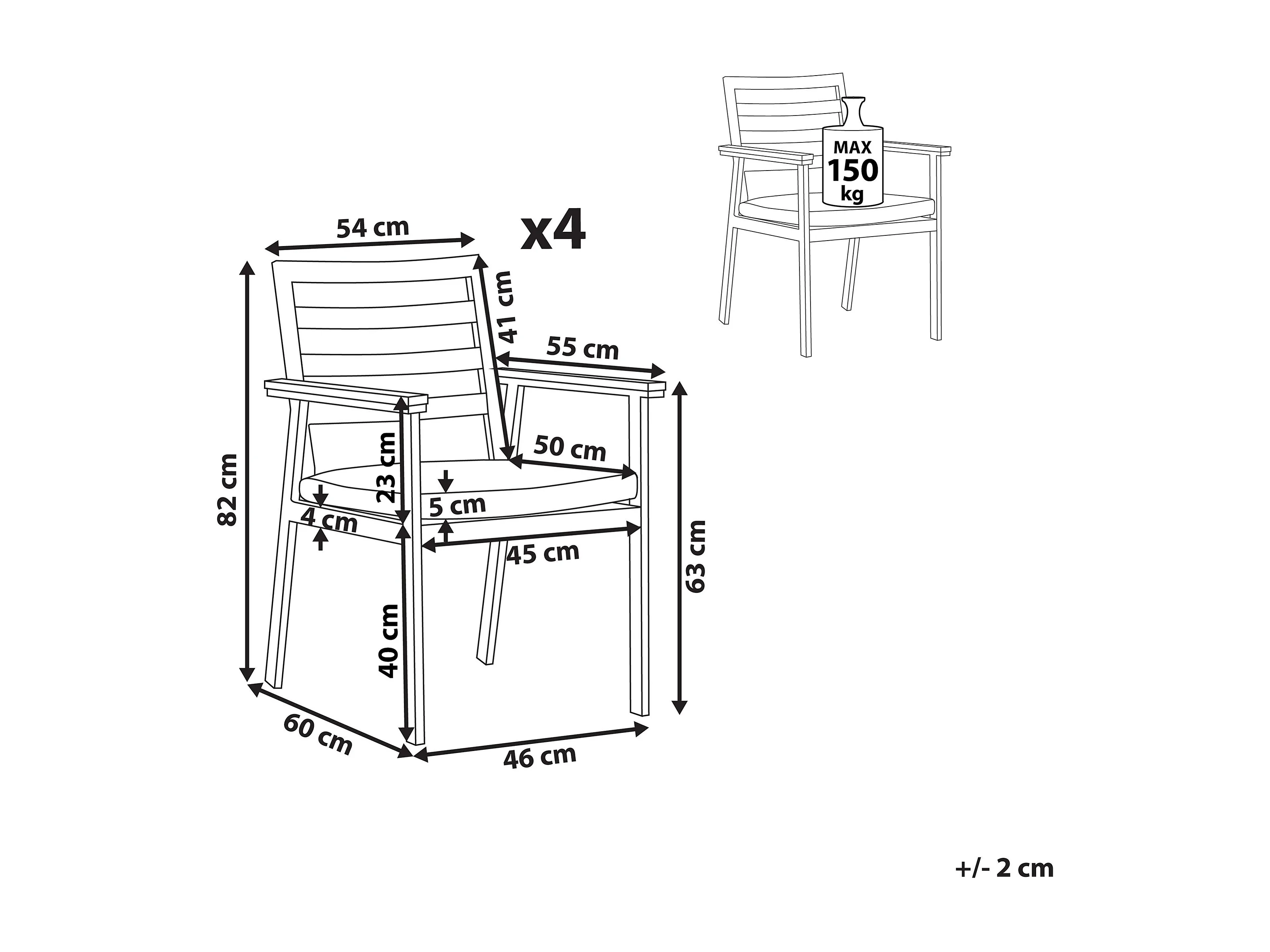 Conjunto de 4 sillas de jardín con cojines CAVOLI Metal Beige