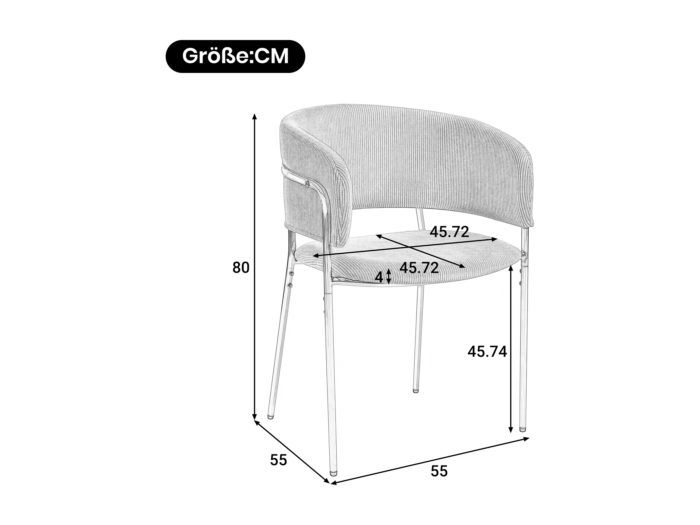 Conjunto de 4 sillas en tejido de pana beige - Patas metálicas regulables