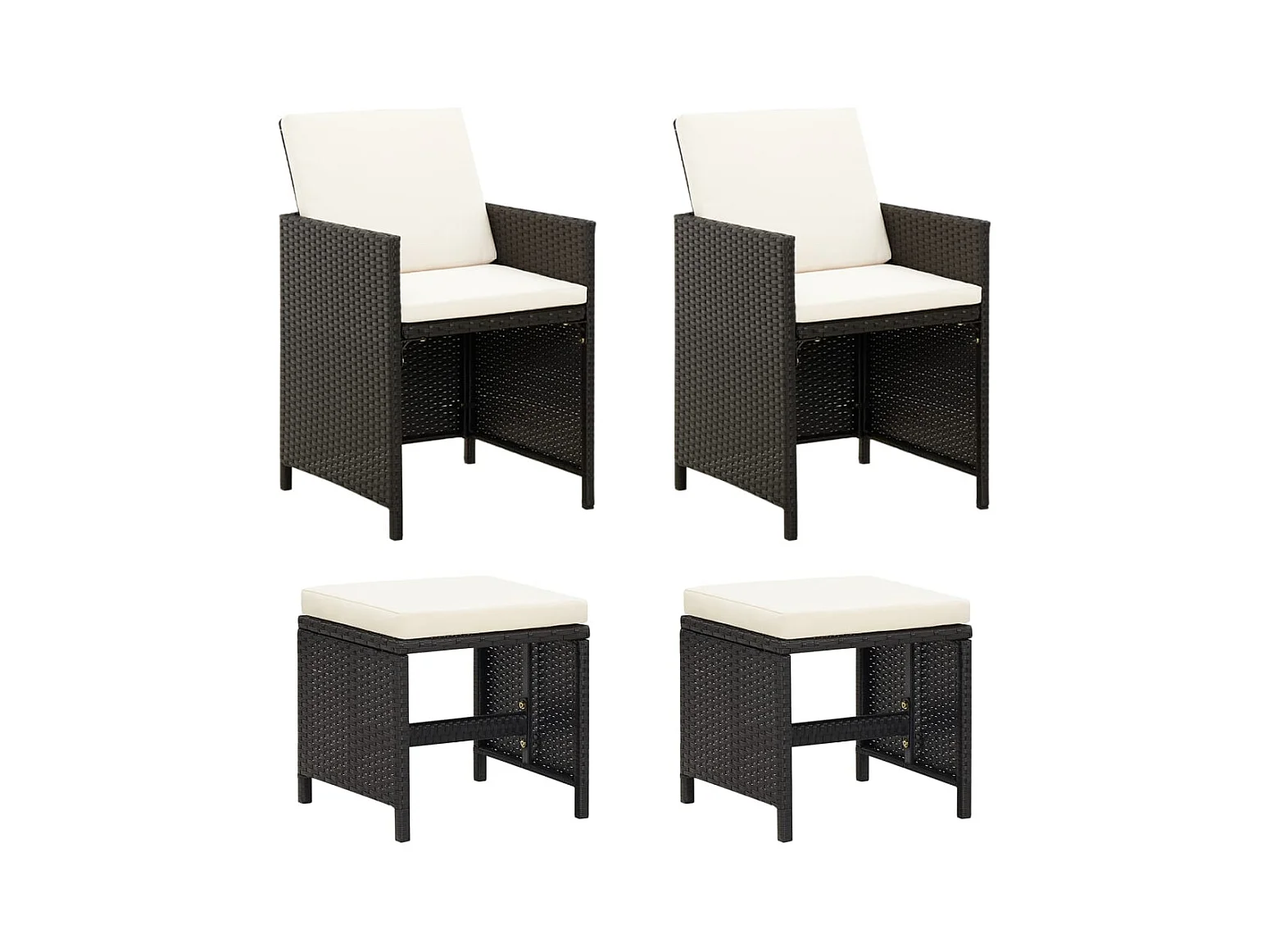 Conjunto de 4 sillas y taburetes de jardín en mimbre negro
