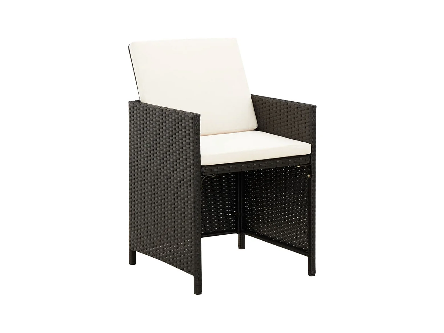 Conjunto de 4 sillas de jardín con cojines de mimbre negro