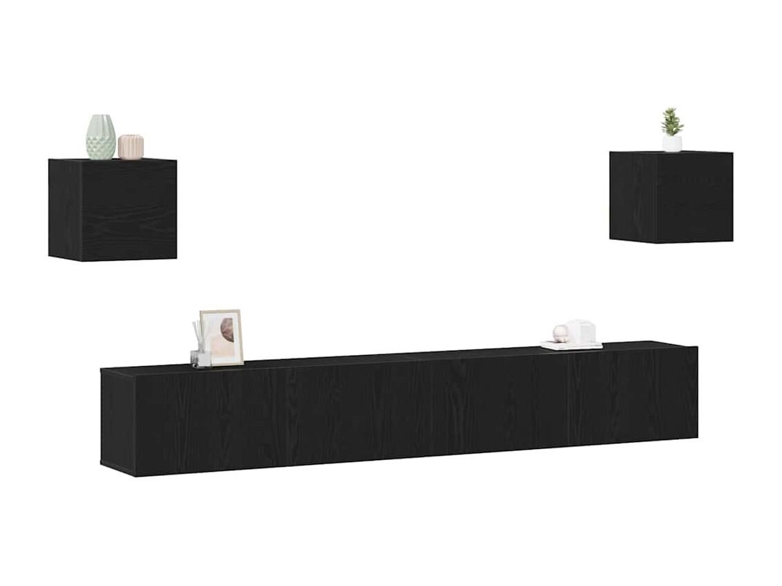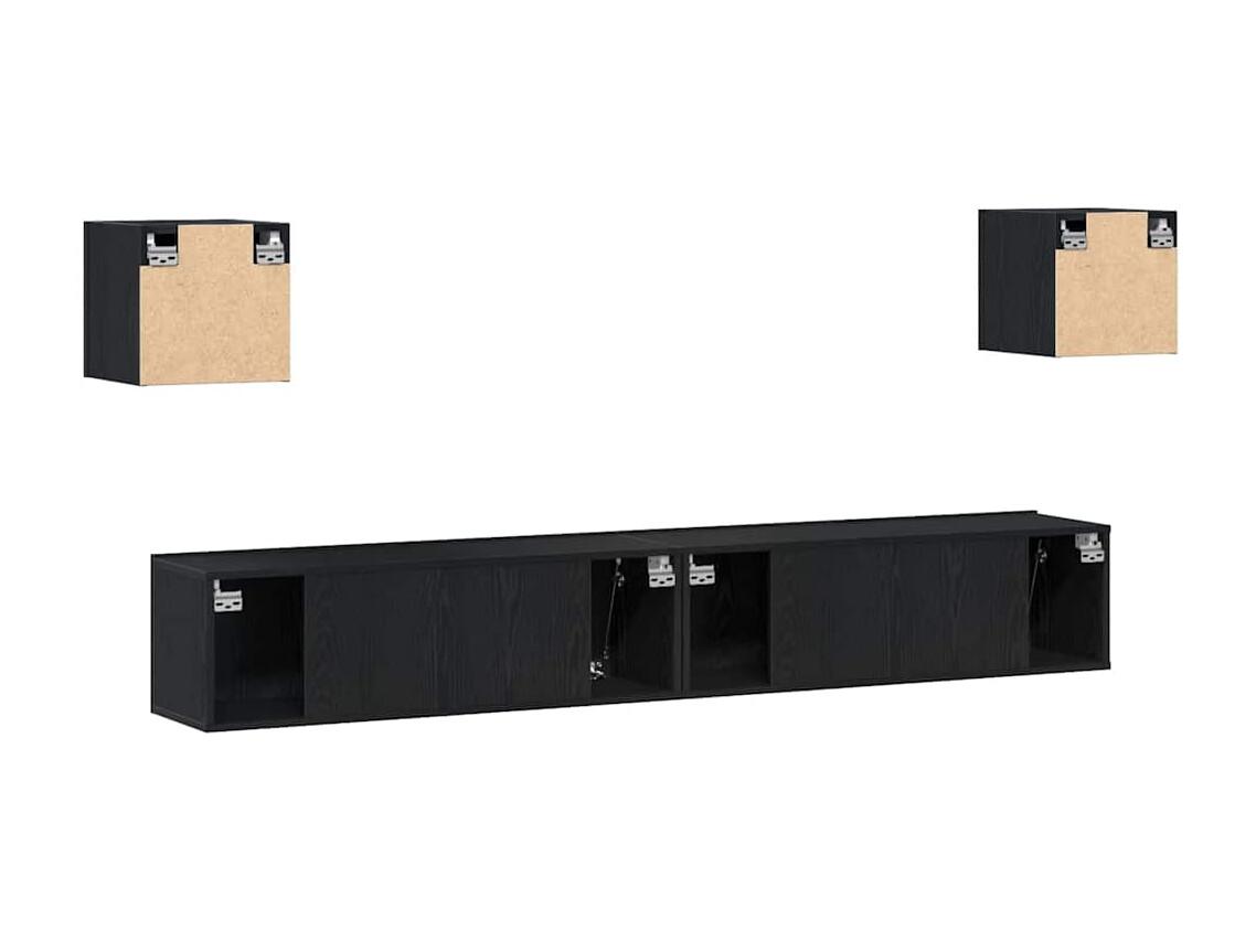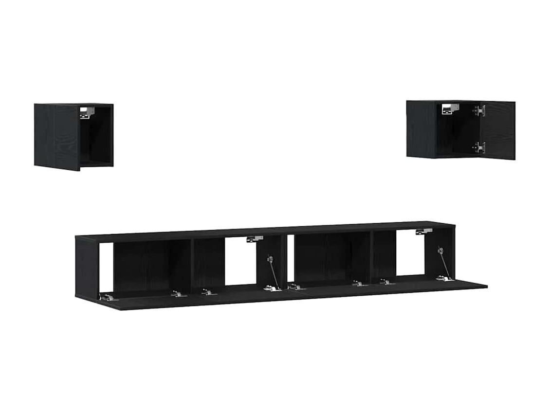 Juego de 4 piezas de mueble de TV - Montaje en pared, en roble negro y contrachapado.