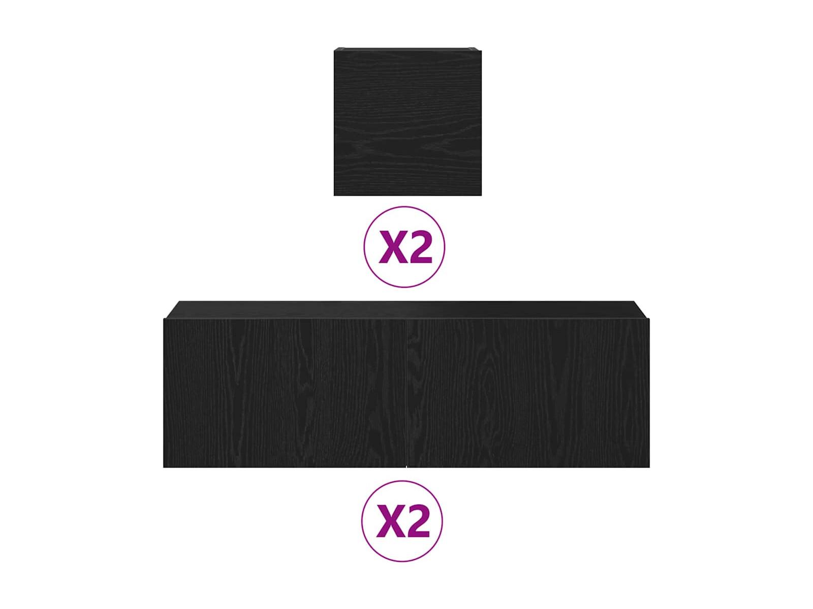 Juego de 4 Piezas de Mueble de TV - Madera de Roble Negro Montada en la Pared
