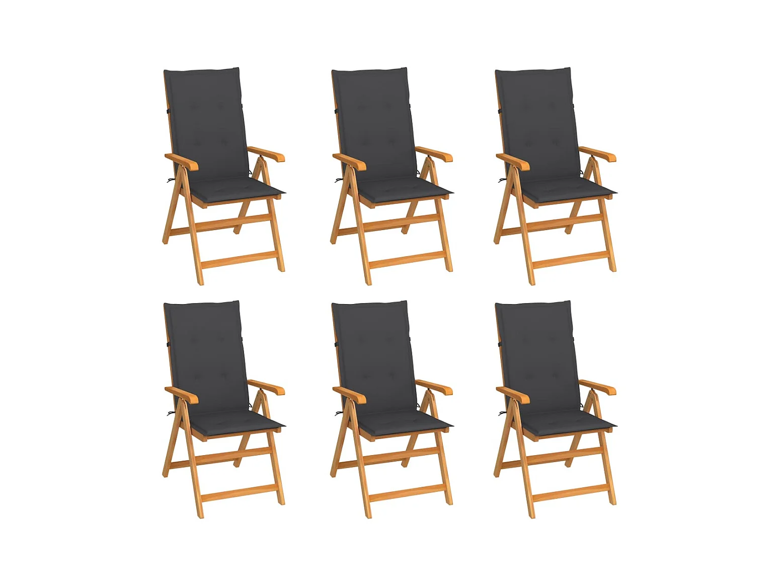 Conjunto de 6 sillas de jardín con cojines antracita, madera de teca