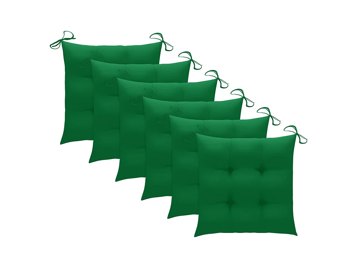 Juego de 6 sillas de jardín y cojines verdes de madera maciza de teca