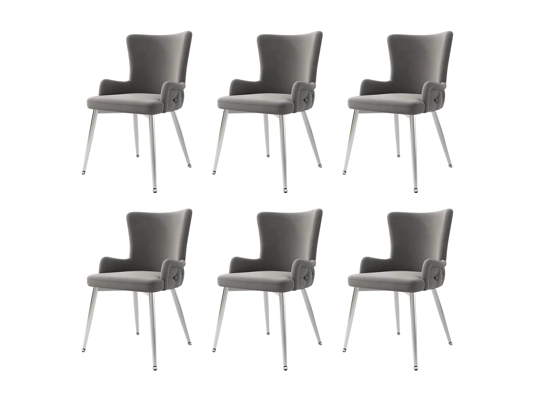 Conjunto de 6 sillas de terciopelo, con 4 pies de metal, carga máxima de 120 kg, 55x48x84cm, gris