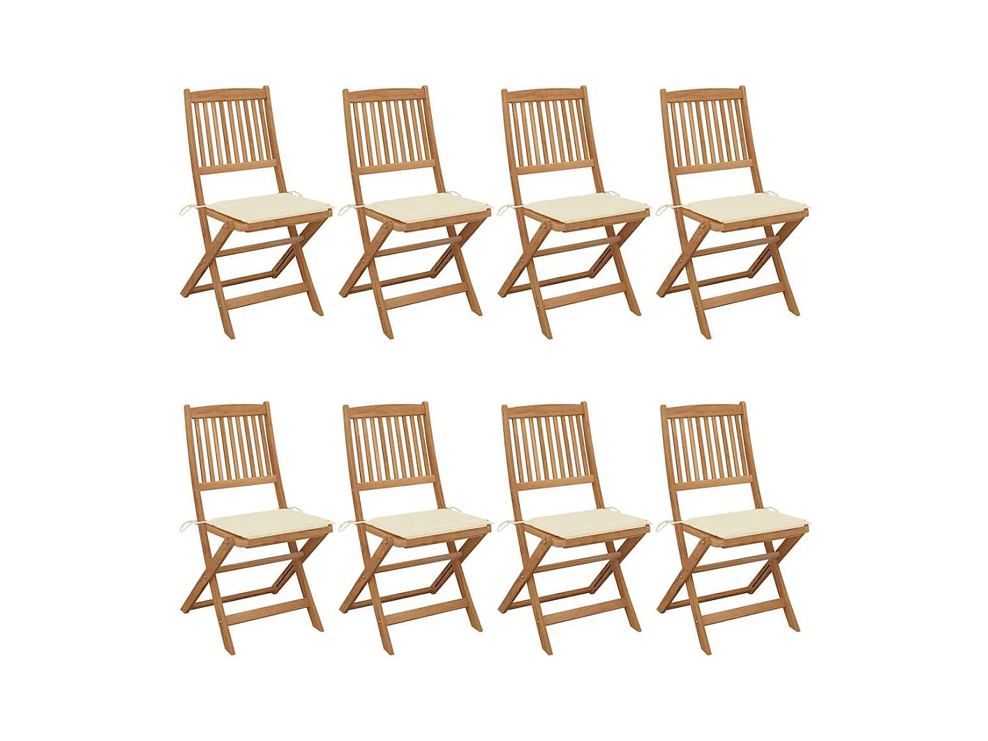 Juego de 8 sillas plegables y cojines para exterior de madera de acacia