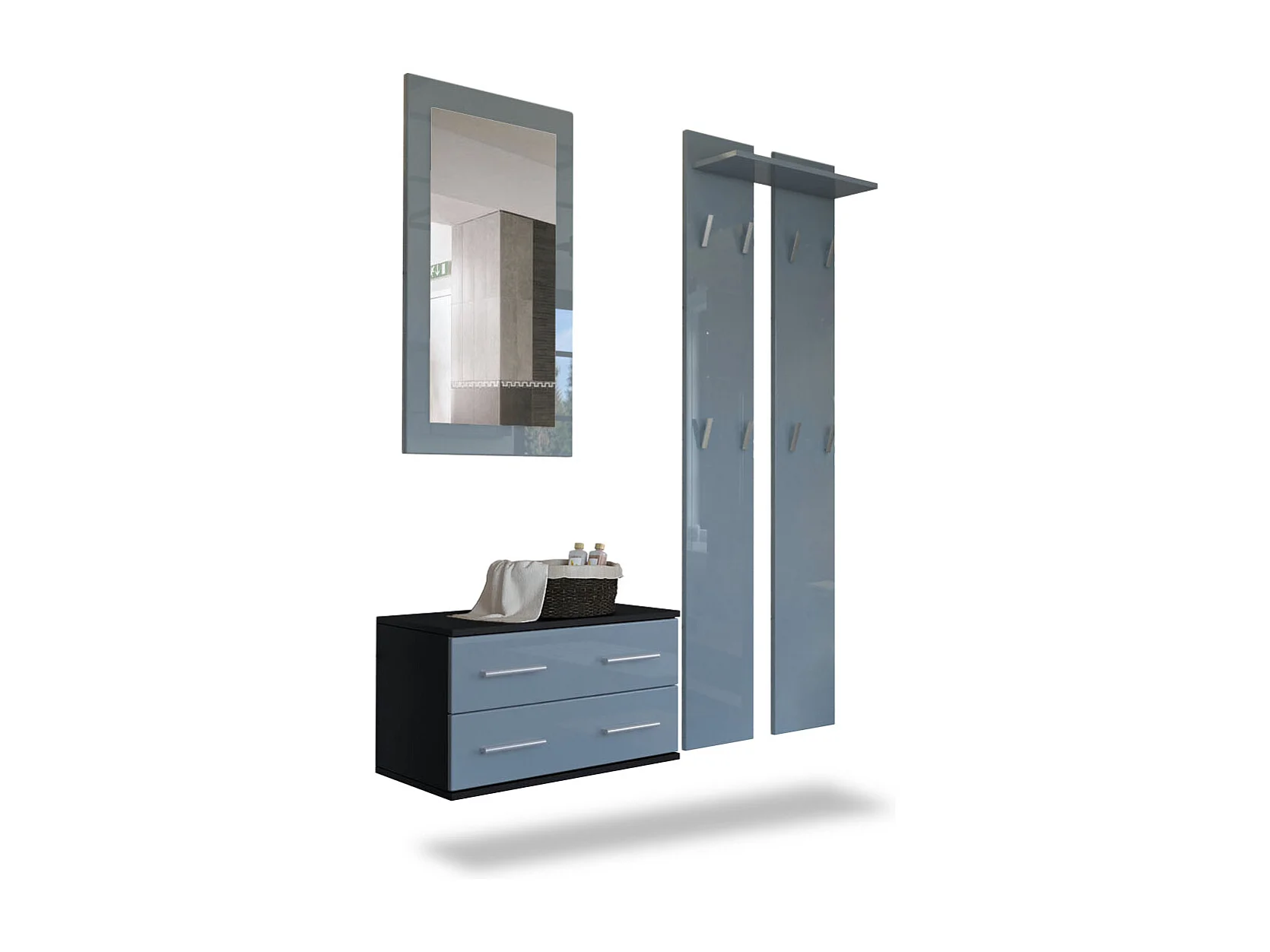 Vladon Mueble recibidor Carlton Set 2, Mueble de entrada compuesto por 1 Perchero, 1 Armario de cajones, antracita mate/gris de alto brillo (105 x 193 x 35 cm)