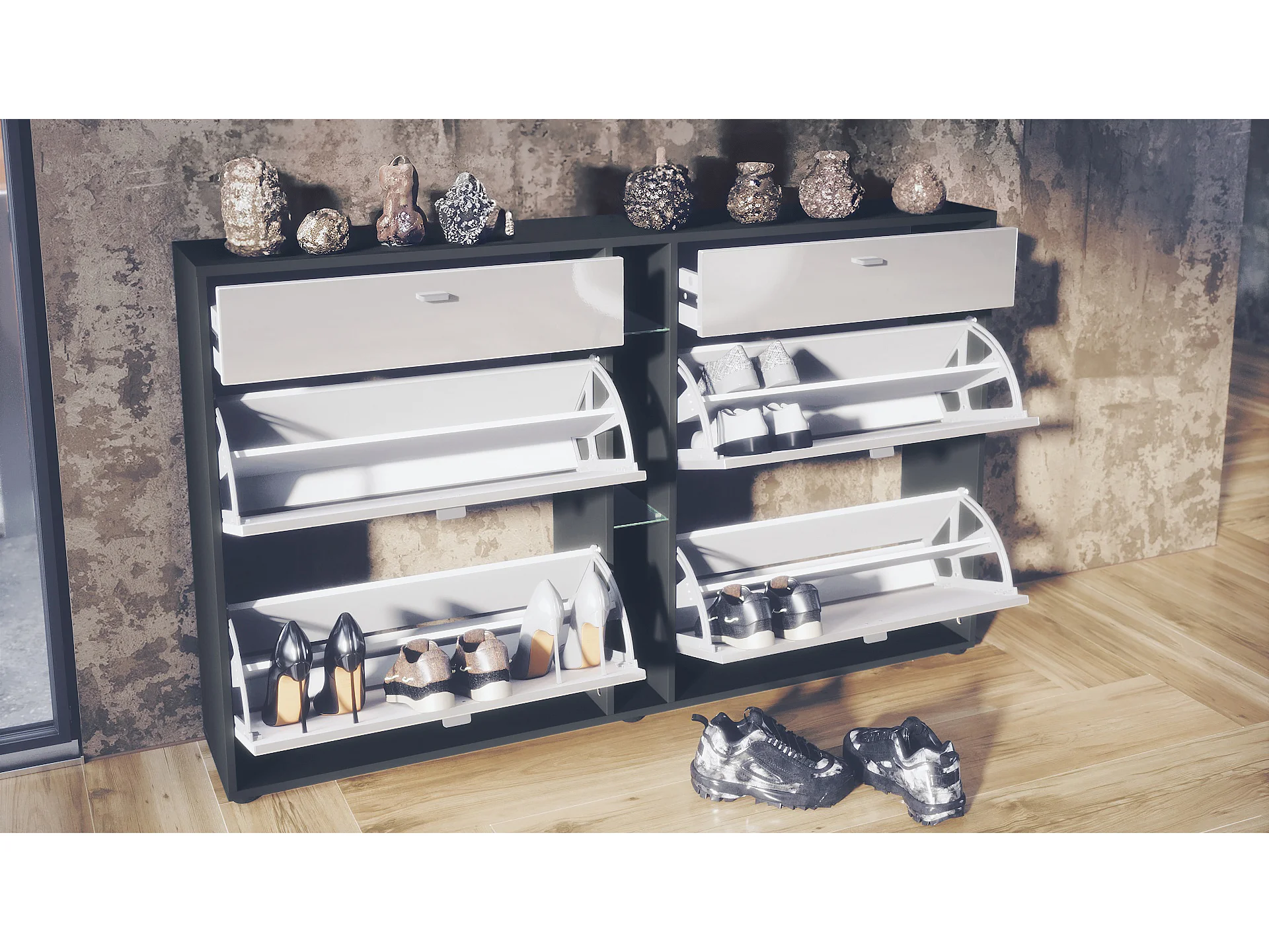 Vladon Conjunto de guardarropa Loret Mini, zapatero 89 x 101 x 23 cm, incluido espejo, 2 paneles de pared, antracita mate y Burdeos de alto brillo