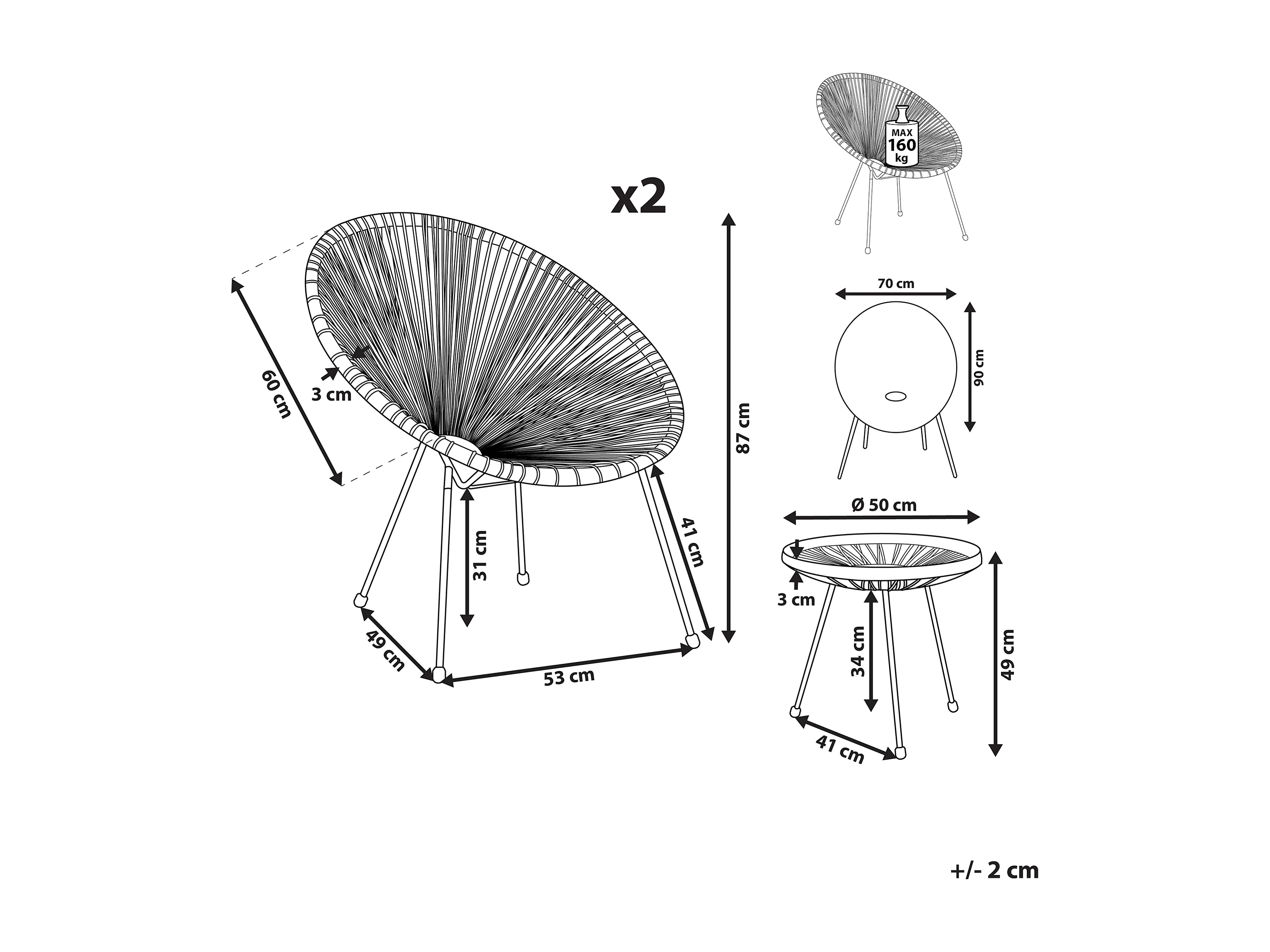 Conjunto de balcón ACAPULCO II Gris claro
