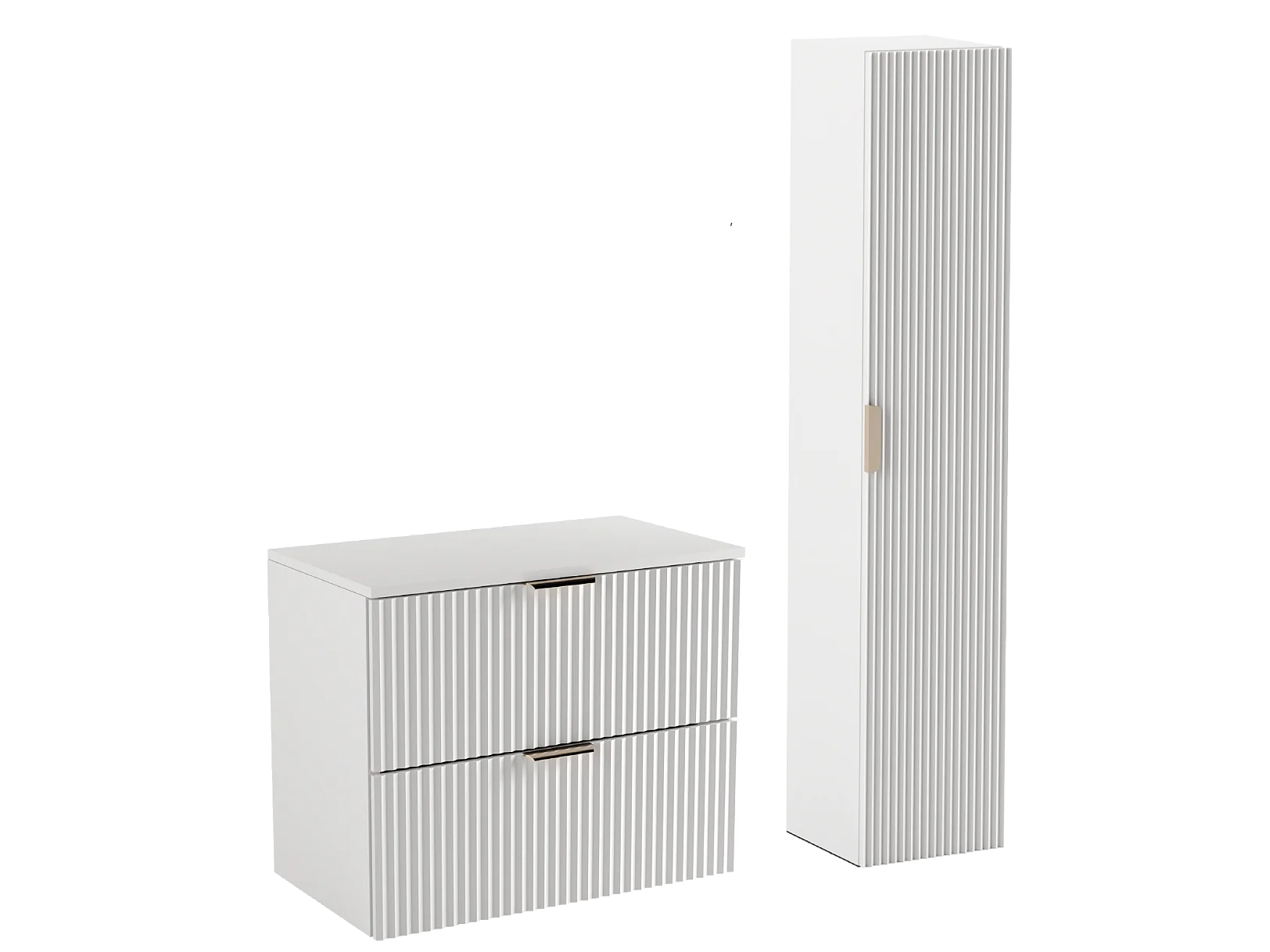 Conjunto de baño blanco 80 cm Armario Encimera Columna Frentes ranurados